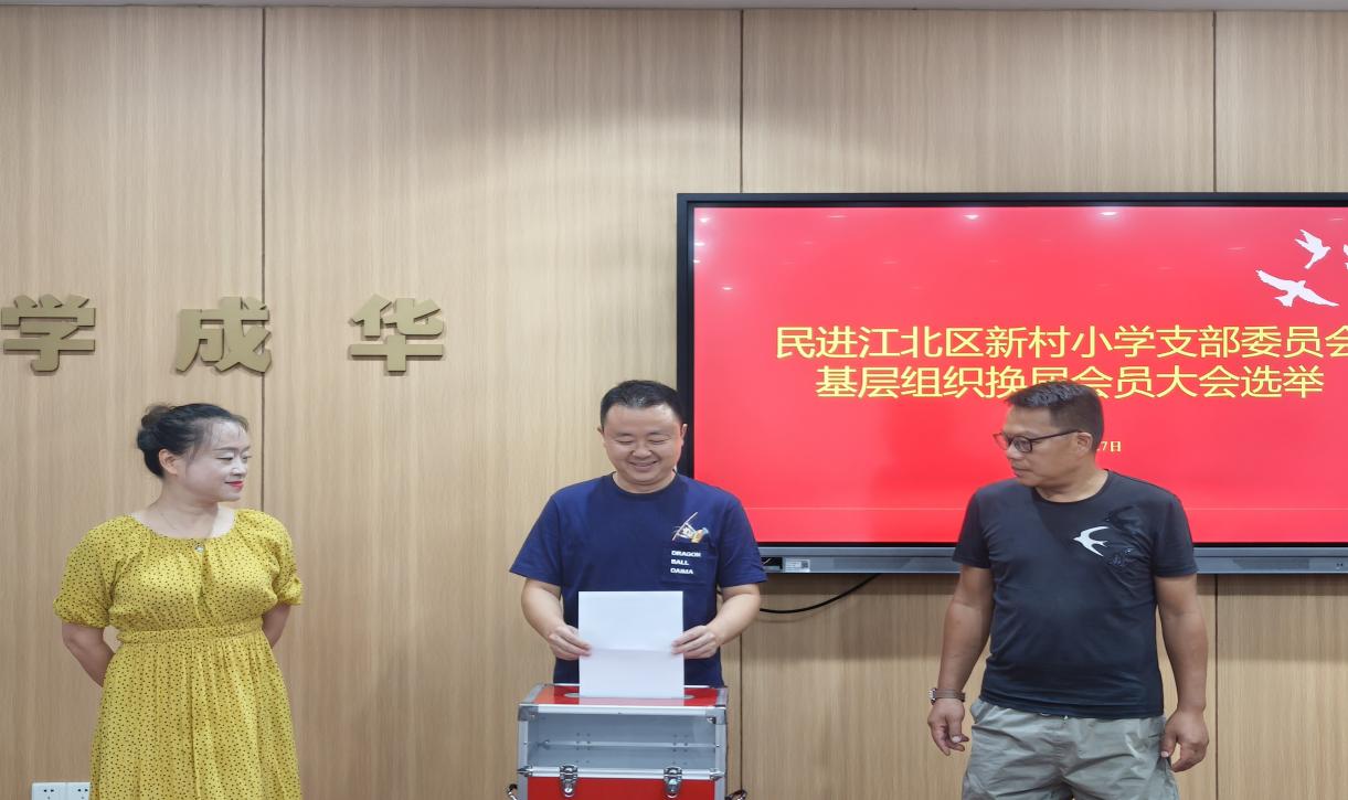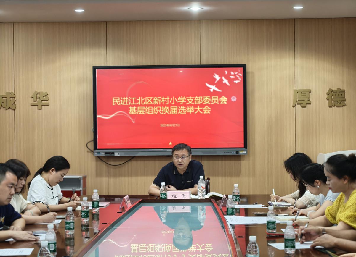 8月27日,民进江北区新村小学支部换届选举大会在江北区华渝实验学校举行。江北区政协副主席、民进江北区委会主委桂飞出席会议。