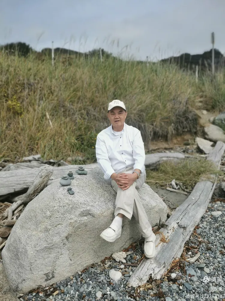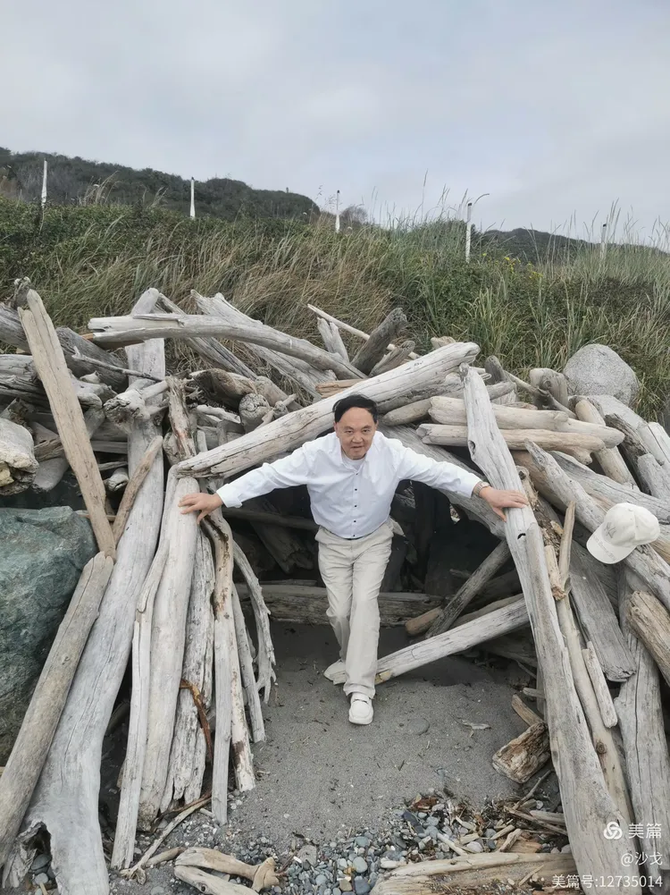 先在海边“朽木”旁石头上坐坐