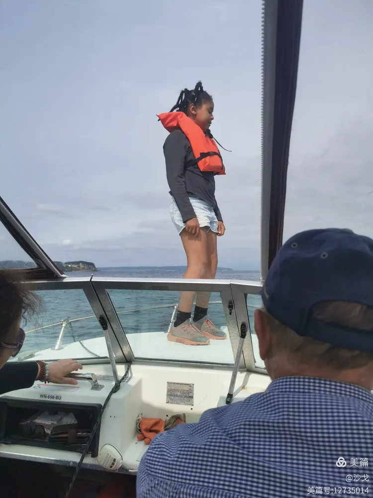 虽说在西雅图,宅家为主,但还是希望到处看看,感受感受。儿子要上班无暇陪我们。儿子的美国朋友艾米母子却热情地扮演陪玩这一角色。她提出了诸如林间采蘑菇、薰衣草园参观、果园摘草莓、学打高尔夫球等等玩耍计划。前天,我们选择了驾车去海边溜溜,然后乘她朋友“渔夫”的快艇出海去观摩他捕捞螃蟹。出发后,路过一片薰衣草园。