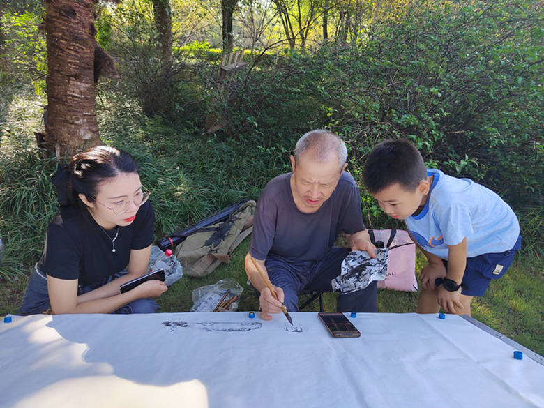 画家们支起画架、拿起画笔,或远眺取景,或近观描摹,将同心公园内的亭台楼阁、绿树繁花等景致定格在画纸上。他们相互交流绘画技巧、分享创作心得,用手中画笔展现自然之美与艺术魅力。