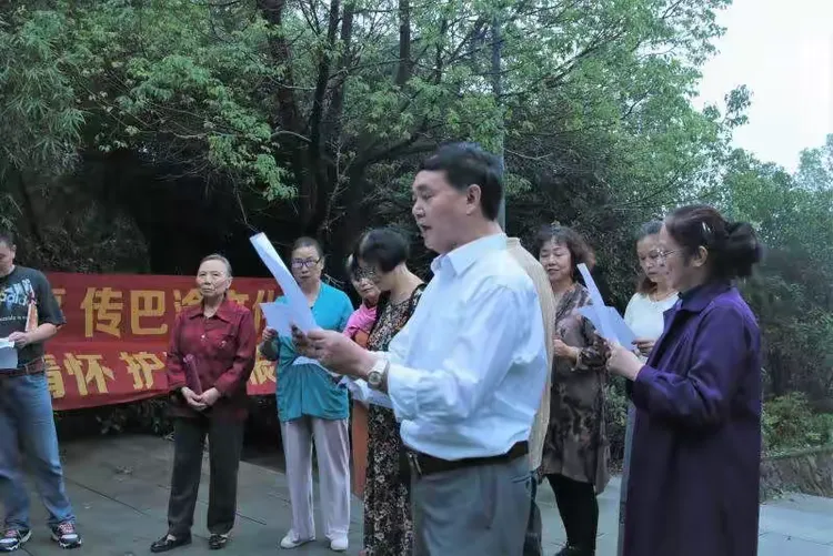 2、9.18,勿忘国耻,重庆“故人旧事文学社社群”群员前往空军坟开展悼唁活动。参观展览馆,祭拜墓园英魂,燃烛、焚香、祭酒之后,依次朗诵献诗。