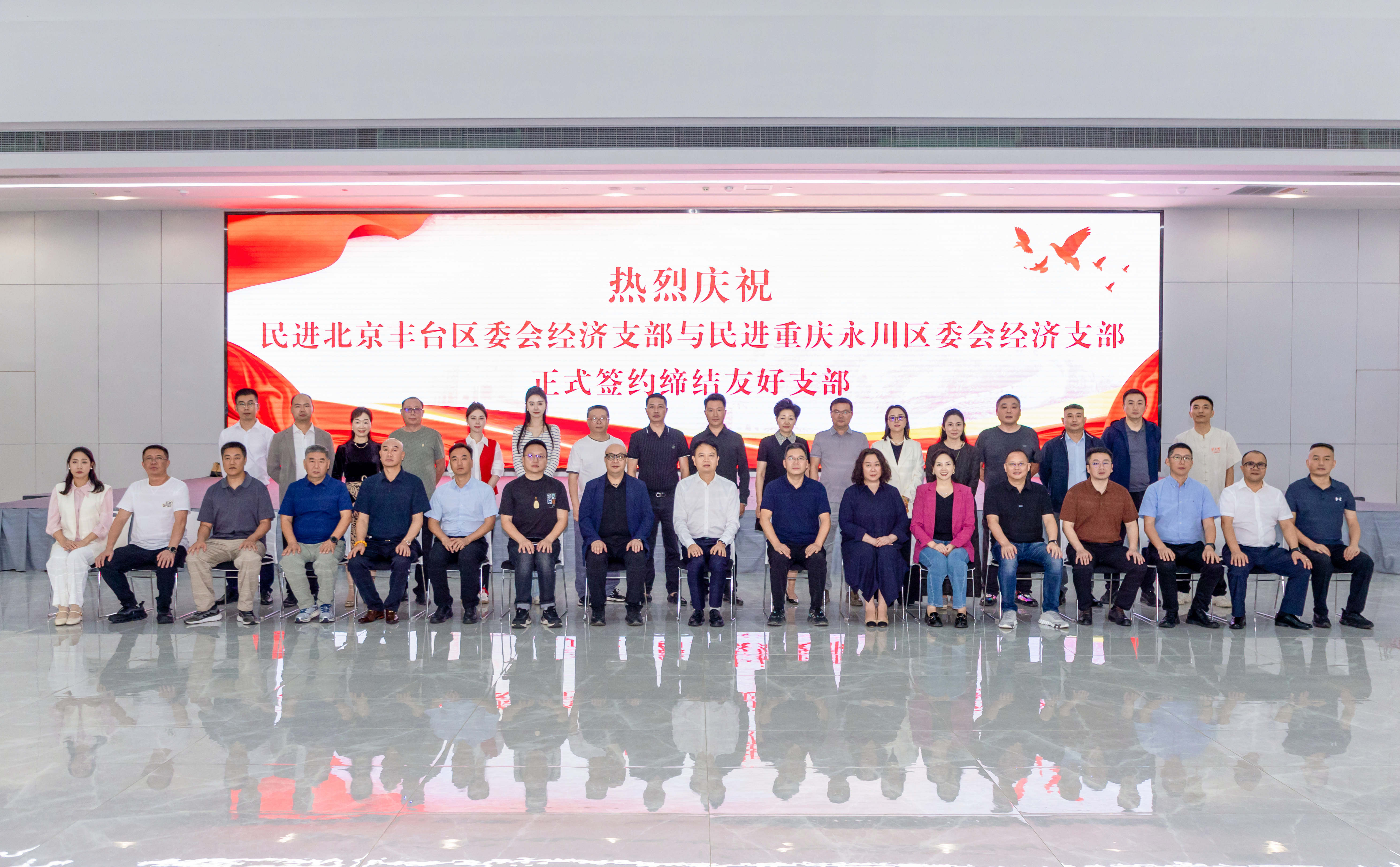 9月26日,民进北京市丰台区经济支部与民进重庆市永川区经济支部在重庆智能工程职业学院举行友好支部签约仪式。民进重庆市委会专职副主委罗挺,中共重庆市永川区委常委、统战部部长陈小东,民进永川区委会主委、区城市管理局局长杜金蓉出席活动。两地经济支部会员代表、企业家联谊会成员等参加活动。