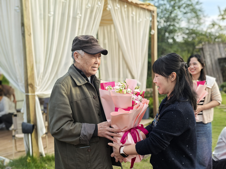 在交流座谈会上,支部领导班子与退休会员促膝长谈,细致询问谭周汉等老会员的近期生活起居与身体状况,认真倾听诉求建议,传递组织的深切关怀。随后,在职会员代表为老会员敬献鲜花,朵朵馨香承载着对老会员昔日贡献的敬意与节日祝福。
