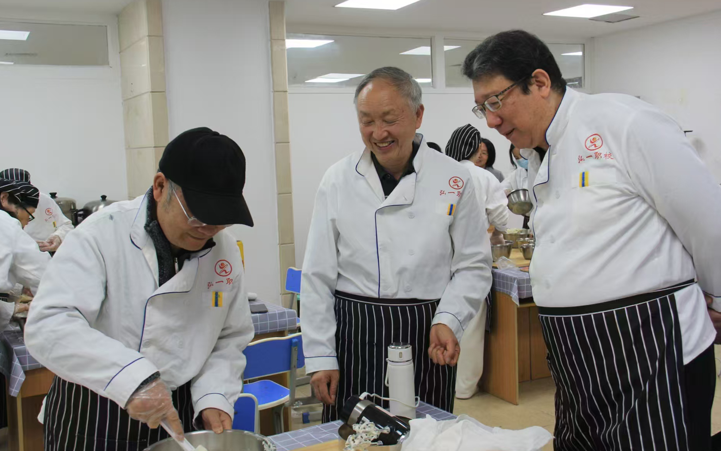 区委会特别邀请了弘一职校的专业面点师傅,现场教授桃酥和桂花糕的制作方法。师傅耐心讲解配料比例、和面技巧、造型要点及烘焙火候,老同志们则兴致勃勃,纷纷卷起衣袖,在助教的协助下动手实践。