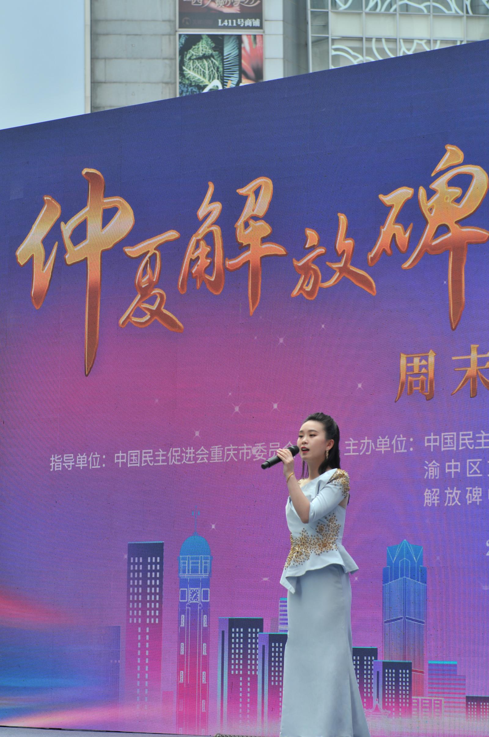 图为柯映璇参加民进“仲夏解放碑”文艺进商圈活动