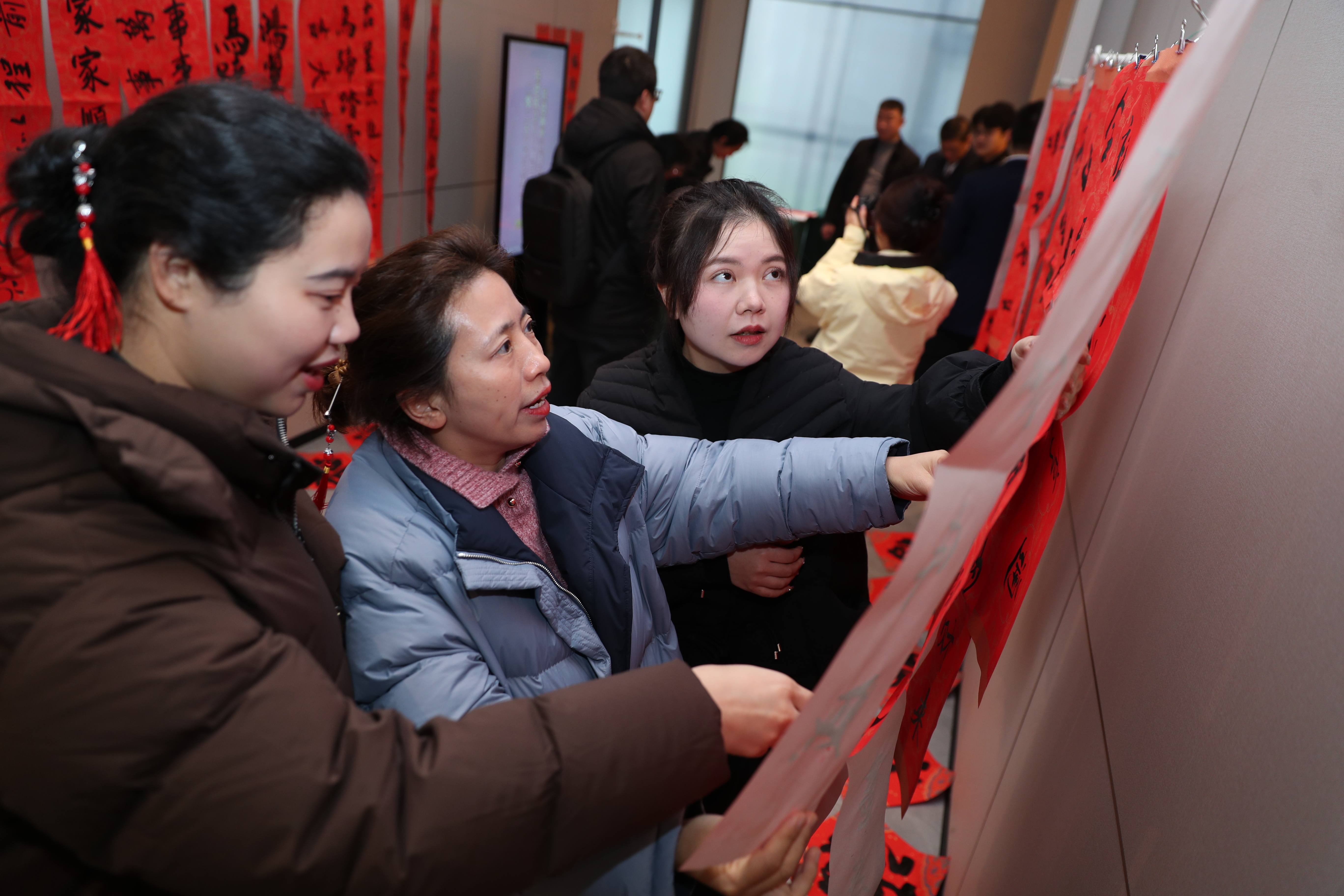 活动现场,5名书法骨干会员挥毫泼墨,将对新年的美好期许融入笔端。一副副寓意吉祥的春联,一个个饱满喜庆的“福”字跃然纸上,会员们围聚围观、踊跃挑选,不时称赞书法作品的精湛技艺,热闹的氛围让年味愈发浓厚。此次活动共送出春联150余副、福字150余张。