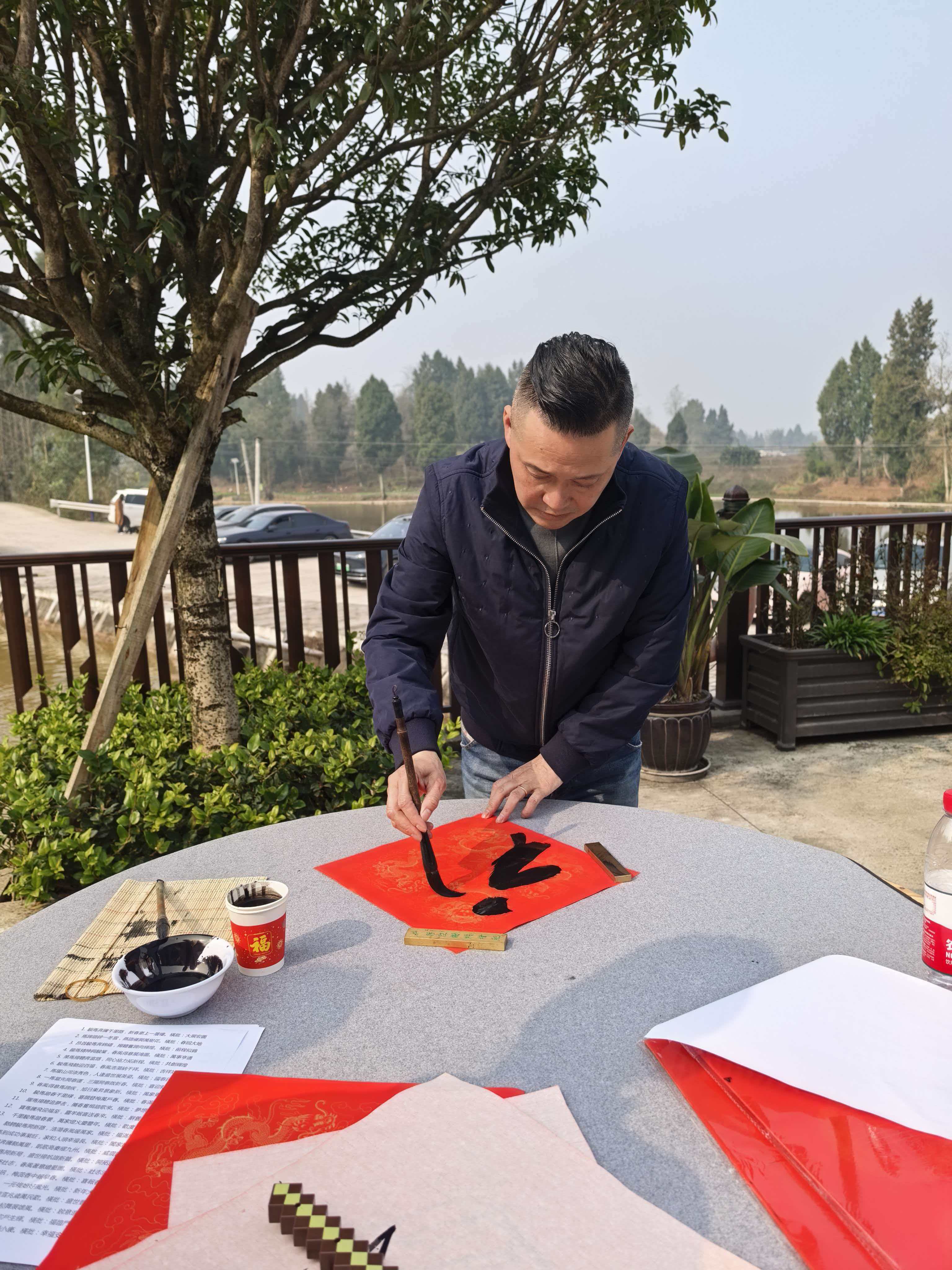 新春佳节临近,为弘扬中华优秀传统文化,营造喜庆祥和的节日氛围,1月17日,大足民进会员、大足区书法家协会主席蔡明波深入大足区国梁镇方碑村,开展“迎新春 送祝福”公益写春联活动,免费为当地村民书写春联和“福”字,将浓浓的年味和新春的祝福送到农家门口。