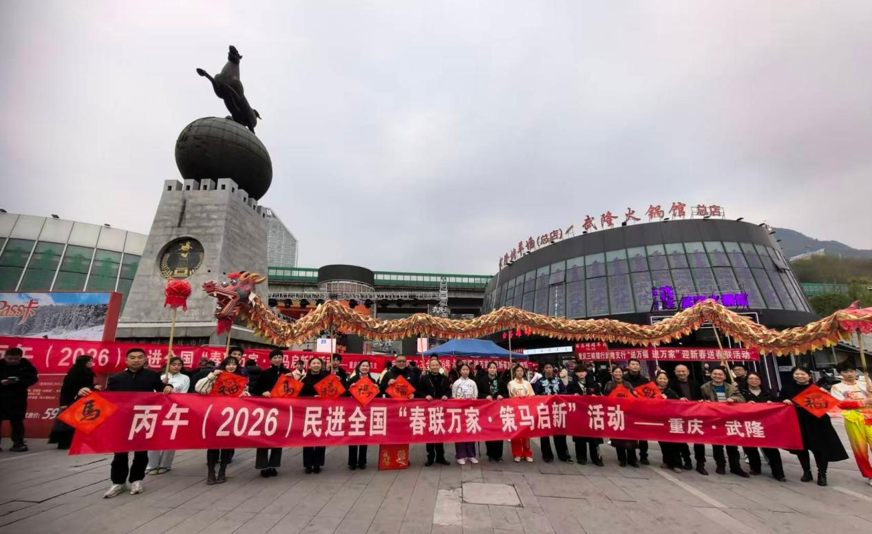 2月5日,民进武隆总支联合区总工会、区文联、区书法家协会、福康医院等单位,在武隆大舞台正式启动丙午(2026)民进全国“春联万家·策马启新”迎新春送春联系列活动,为广大市民送上饱含温度的新春祝福。