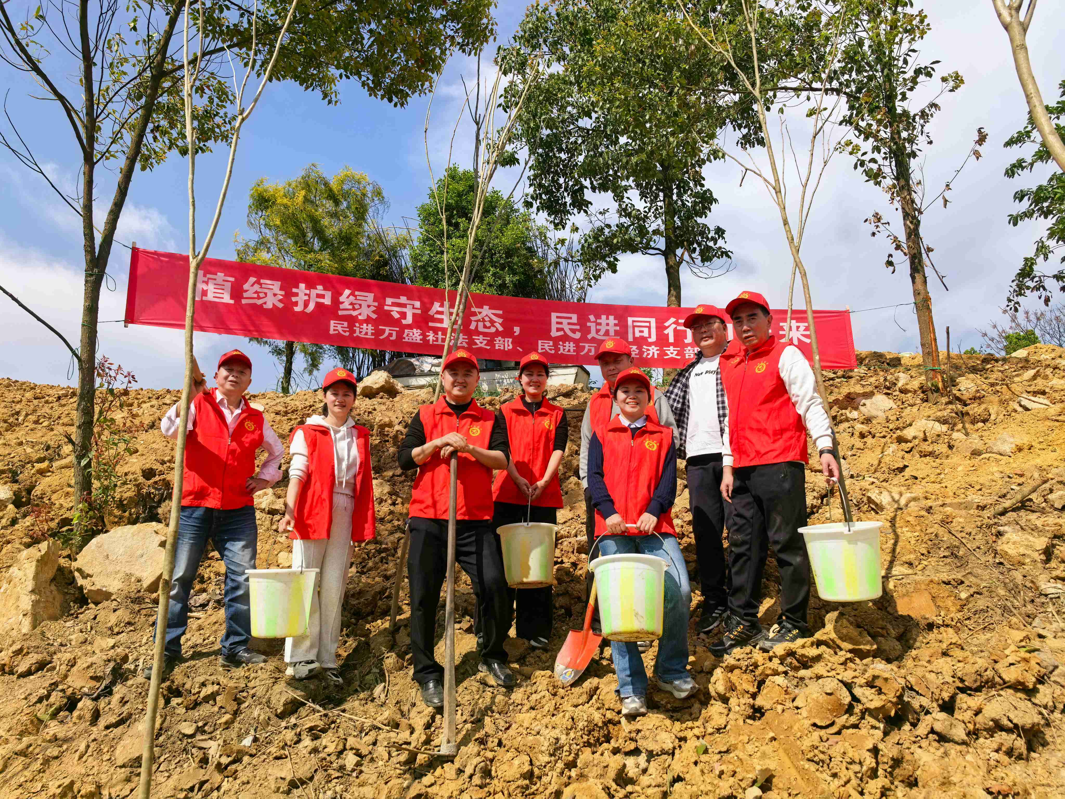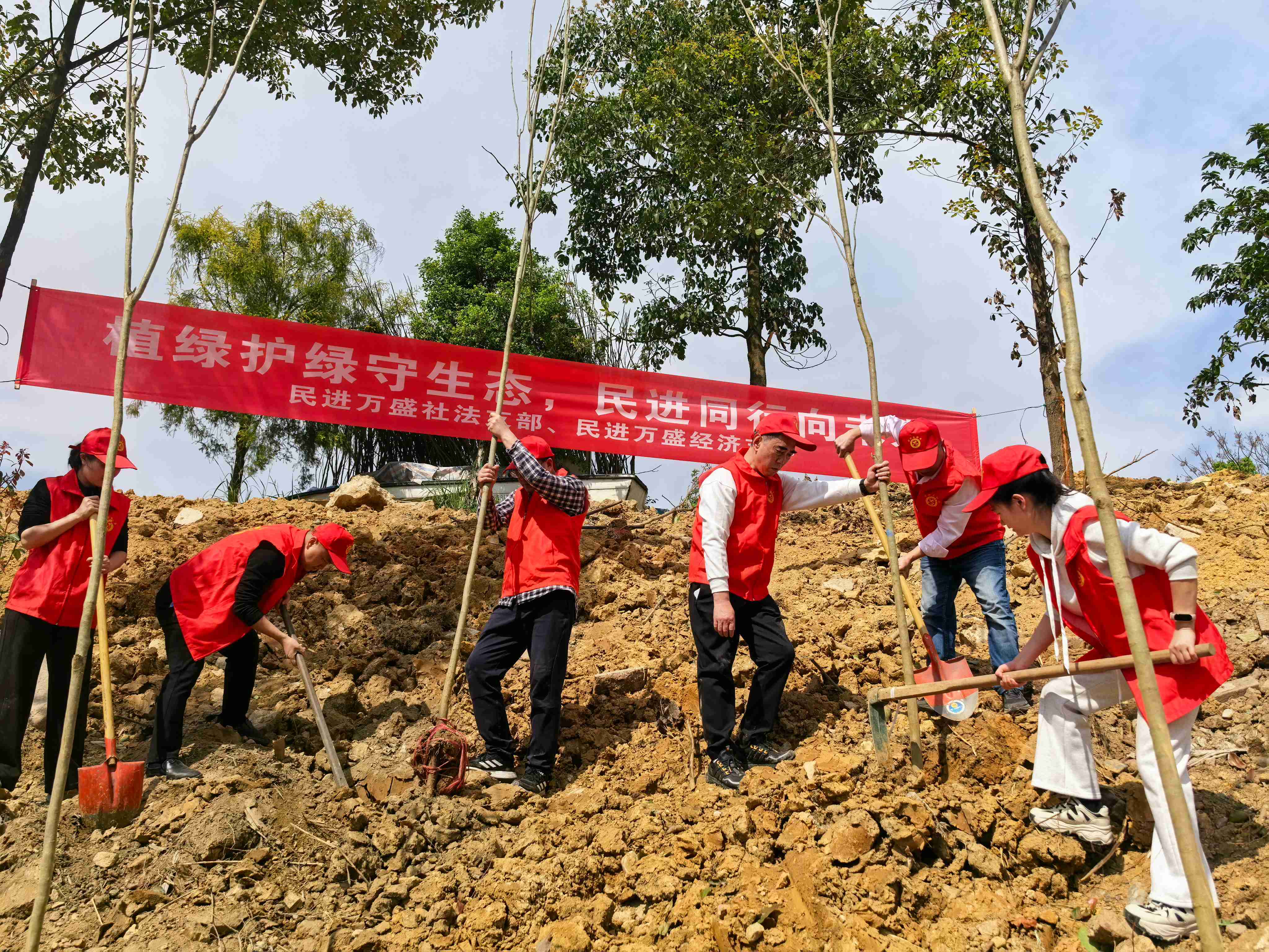 3月11日,民进万盛经济支部和万盛社会法治支部在万东镇五河村联合开展“植绿护绿守生态 民进同行向未来”义务植树活动,以实际行动践行生态文明理念,为生态建设增绿添彩、增色添力。