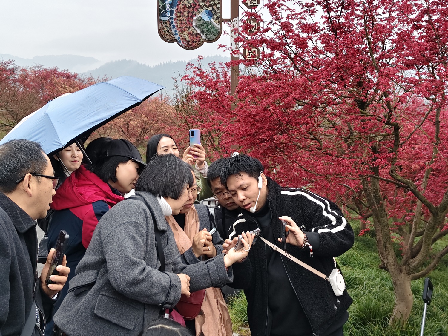 在南湖多彩植物园内,青年导演、民进会员卢安军从配置外挂设备、光圈快门感光度三要素、构图等方面讲解手机摄影的基本知识和方法,指导大家通过选择不同拍摄模式、将拍摄主体放到井字交叉点、调节景深和色调等技巧提升摄影效果。会员们饶有兴致地积极尝试,浓艳的红枫、灿烂的油菜、窜跳的松鼠都被镜头一一记录,随大家唱起《三月里的小雨》的歌声和欢笑在园中荡漾。