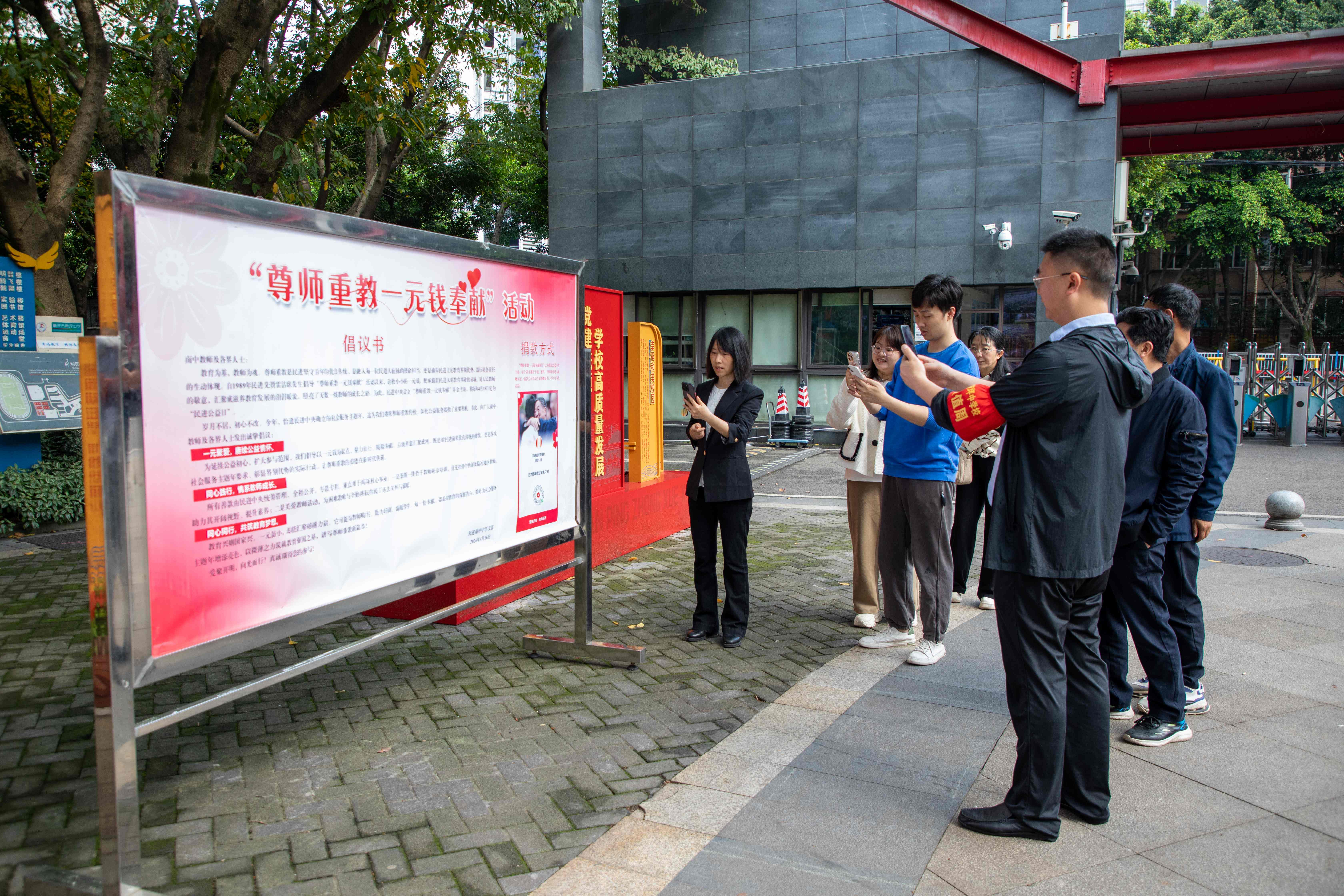 倡议发出后,全校上下热烈响应、踊跃参与。支部退休会员、全国优秀教师、重庆市“最美民进人”“南岸区教书育人楷模”刘雪梅专程返校奉献爱心,她动情说道:“作为老民进人、老教育工作者,尊师重教是刻在骨子里的信念,传承公益初心是义不容辞的责任。愿以点滴微光,汇聚育人暖流,助力教师成长,守护教育本真,不负先贤嘱托,不负教育使命。”