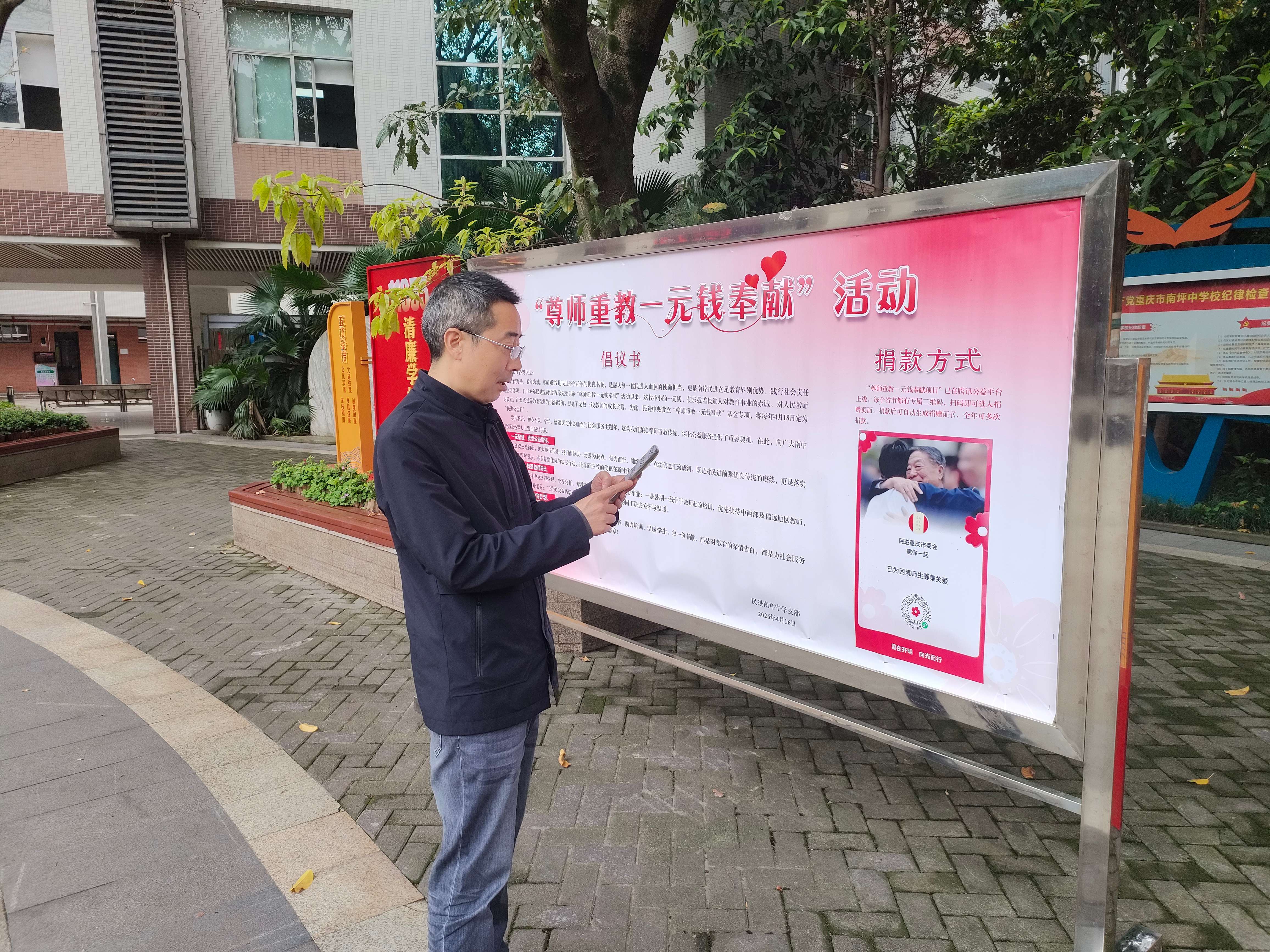 2026年是民进社会服务主题年,为深入学习贯彻全国两会精神,落实民进十五届四中全会部署,深化“参政为公,实干为民”主题教育,4月16 日,民进南坪中学支部积极响应民进中央、市委会及南岸区委会号召,开展“尊师重教一元钱奉献”公益活动,以微善传温情,以实干显担当。