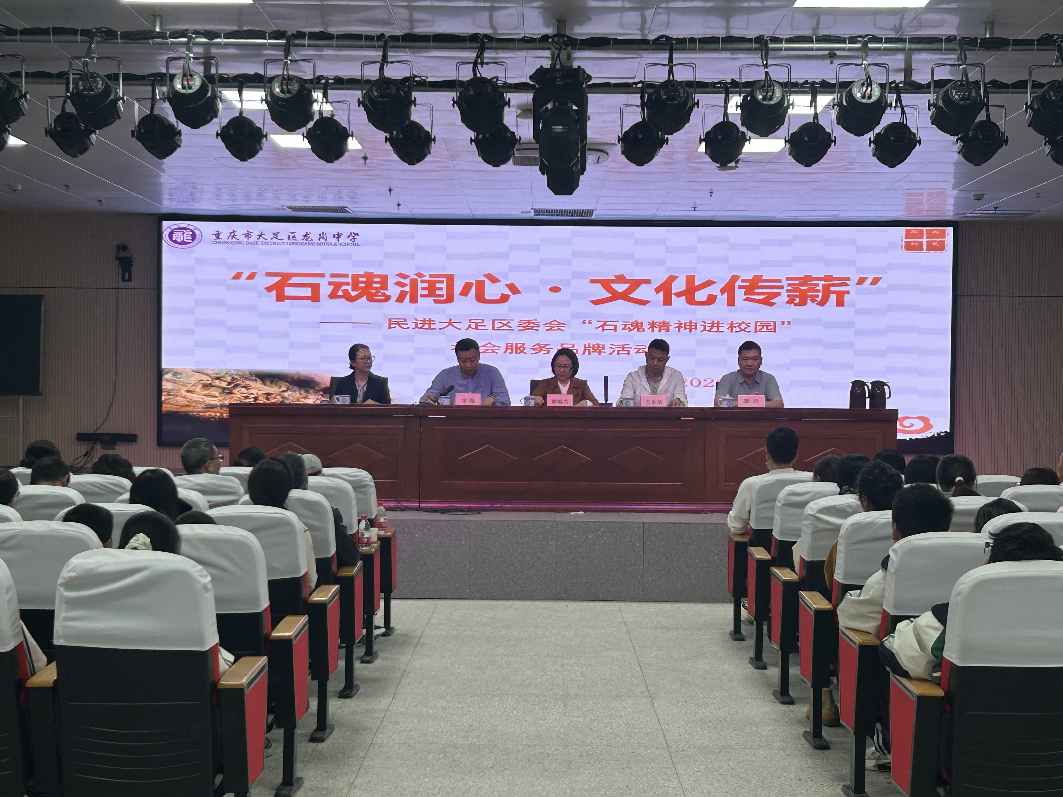 4月16日,民进大足区委会“石魂精神进校园”社会服务品牌活动在大足区龙岗中学正式启动。本次活动旨在发挥大足石刻文化资源优势,推动本土优秀传统文化进校园、进课堂、进心灵。