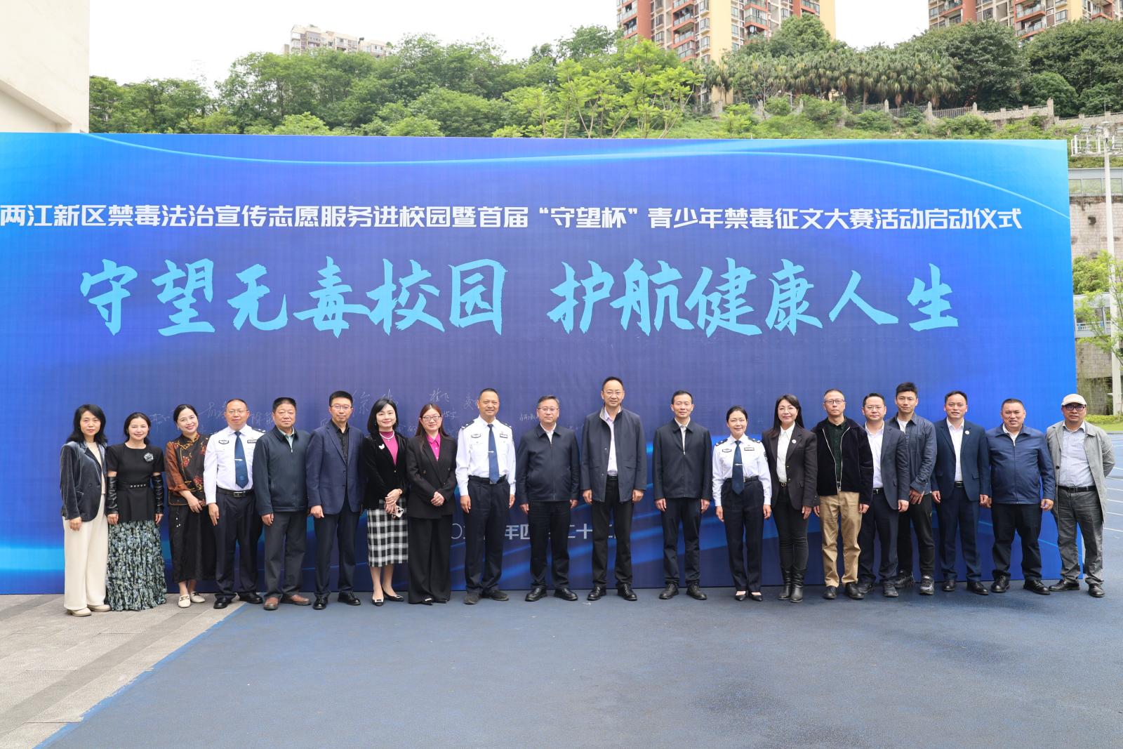 4月22日,两江新区禁毒法治宣传志愿者进校园暨首届“守望杯”青少年禁毒征文大赛活动启动仪式在重庆八中龙塔实验学校举行。