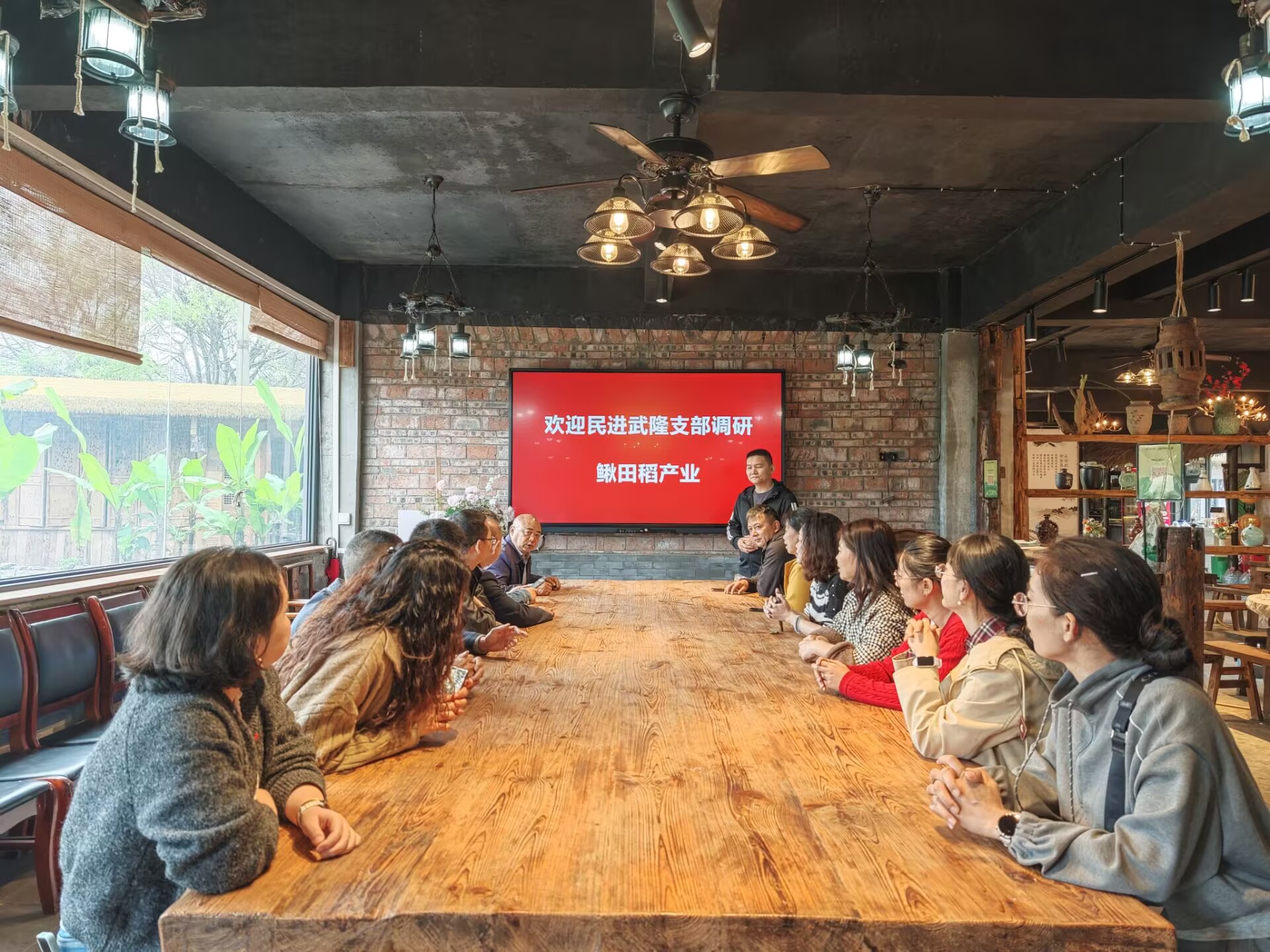 活动现场,综合支部主委代奎同志传达全国 “两会” 精神及民进中央关于在全会开展“参政为公、实干为民”主题教育的实施方案,文化与医卫支部主委夏明同志领学2026年中央一号文件精神,让全体会员深刻把握新时代 “三农” 工作总要求与乡村振兴重点任务。鳅田稻基地负责人陈明亿详细介绍基地建设、生态种植模式、电商销售渠道及产业带动成效,让大家直观感受特色农业助力乡村发展的生动实践。