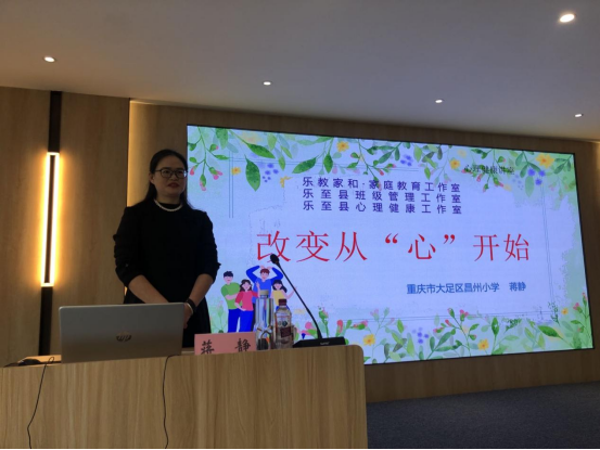 11月23日,民进大足区委会会员蒋静受邀前往四川省资阳市乐至县进行家庭教育心理健康专题讲座。在县政协诗书画院二楼会议室,蒋静以《改变从“心”开始》为题,为大家进行了深入浅出的讲解。乐教家和·家庭教育工作室、乐至县班级管理工作室、乐至县心理健康工作室共60余名成员现场聆听了本场讲座。