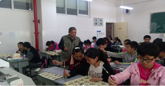 为了引导学生领悟国学精髓,彰显传统文化魅力,徐悲鸿中学在初一年级开设了书法选修课。民进江北退休支部的贺启鸿老师应邀到校指导书法艺术教学,通过开展书法讲座、现场演示、教学讲解等形式对学生进行指导,充分展现了民进会员的风采和素养。