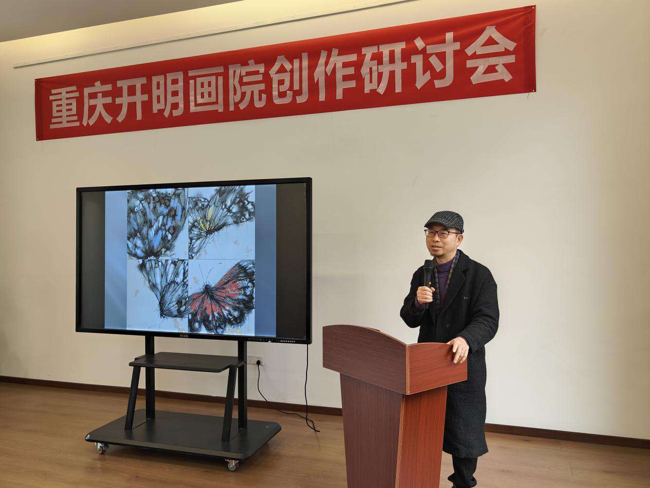 会上,重庆开明画院副院长刘海峰、黄剑武,四川美术学院中国画与书法艺术学院副教授马媛媛围绕新时代背景下的当代美术书法艺术创作发展趋势、视觉图像的生成流变、个人创作经验等进行分享。重庆大学建筑城规学院教授龙鸿、重庆师范大学美术学院教授邓旭、四川美术学院艺术人文学院副教授陈德洪、重庆大学艺术学院副教授巫大军、三合美术馆馆长荣占国进行点评。大家围绕研讨主题开展交流。