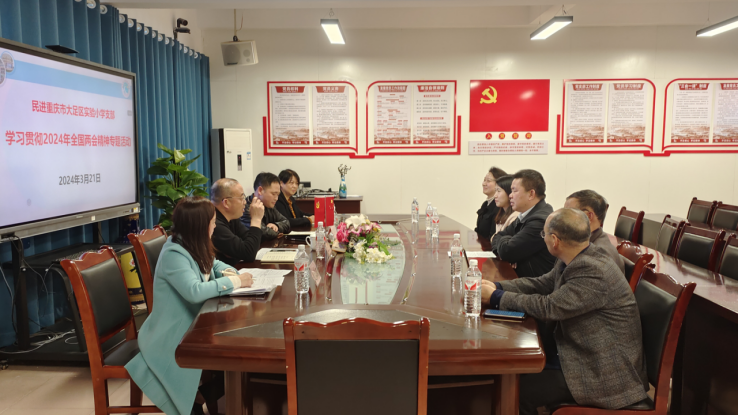 3月21日,民进重庆市大足区实验小学支部召开2024年全国两会精神专题学习会。民进大足区委会副主委、大足区实验小学校长王存勇,大足区实验小学党总支部书记康中刚,民进大足区实验小学支部主委赵祖莉参加会议。