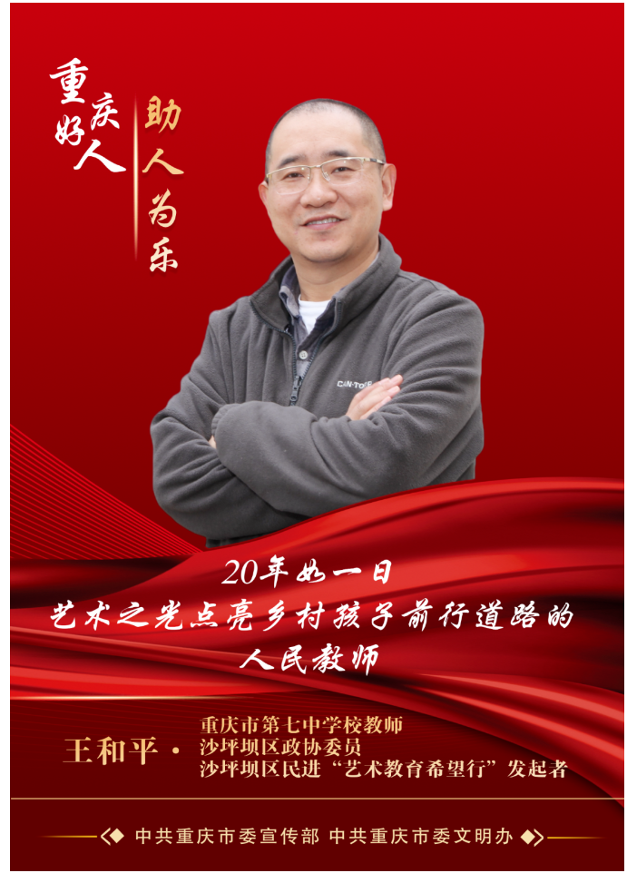 近日,中共重庆市委宣传部、中共重庆市委文明办评选推出了2024年第一季度“重庆好人”共计20人(组)。沙坪坝区政协委员、民进会员王和平被评为2024年第一季度“重庆好人”。