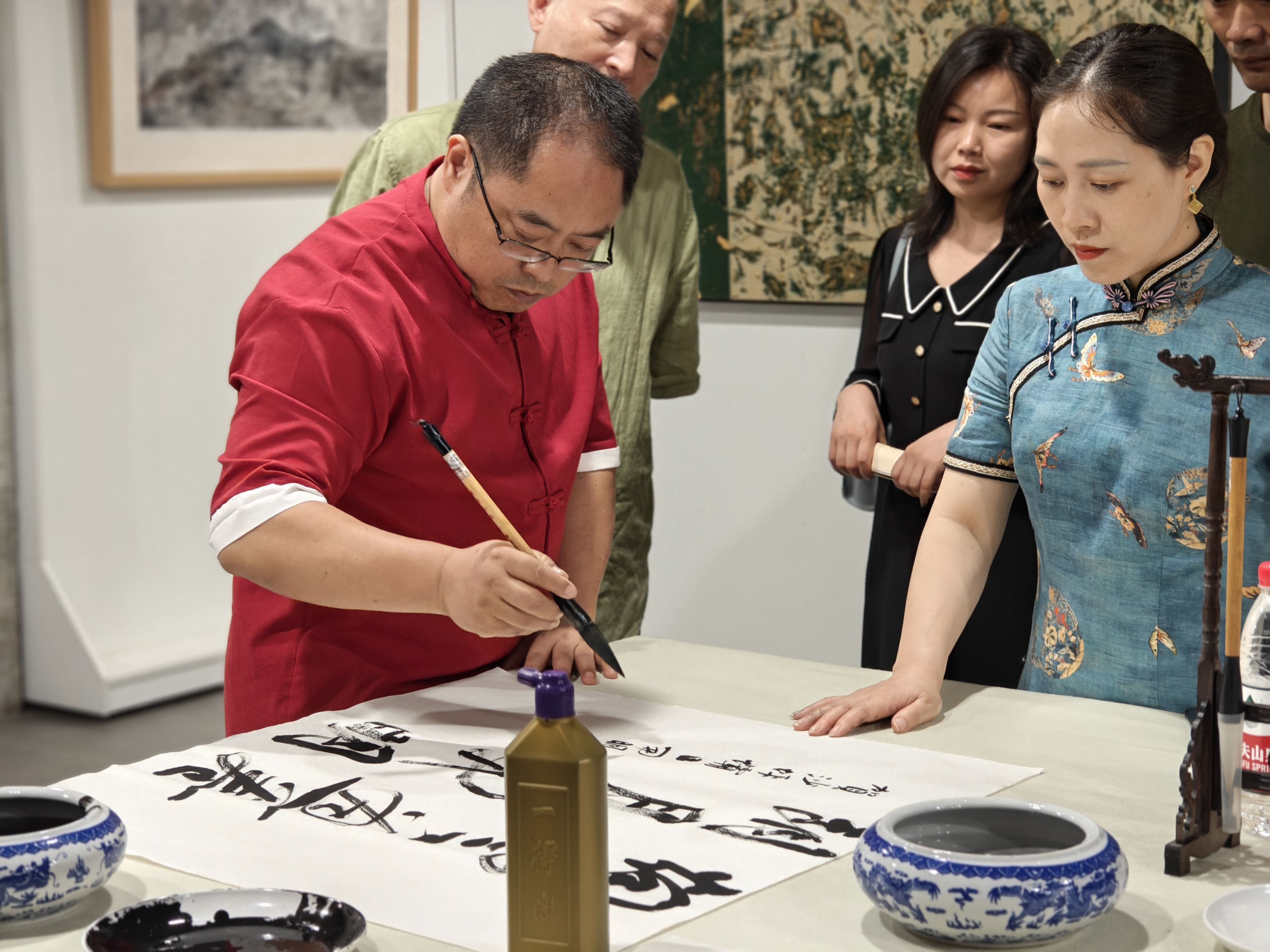 仪式现场还举办了画院书画作品展,展出各类书画作品100余幅。仪式后,沙坪坝开明画院的艺术家与会员们参观了展览,并进行了笔会交流,现场创作书画作品10余幅。