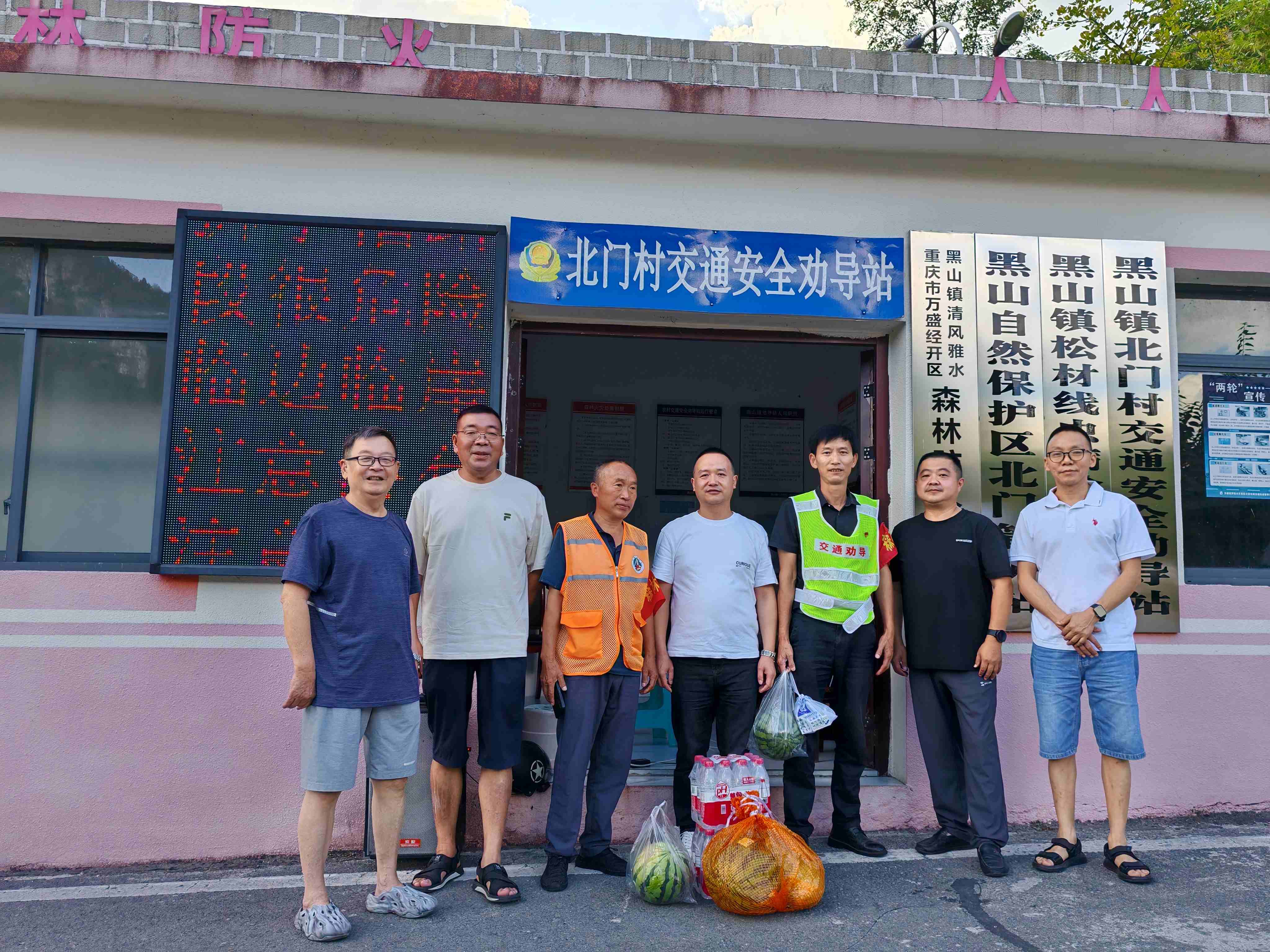 为关心慰问黑山镇森林防火劝导检查站一线工作人员,9月8日下午,民进綦江区十一支部刘洪波主委带领支部会员代表到黑山镇南门村和北门村森林防火劝导检查站对一线工作人员进行慰问,对他们顶烈日、战酷暑,坚守岗位,筑牢森林防火屏障表达感谢,并为他们送去了防暑降温药品、矿泉水等物资,叮嘱他们注意做好防暑降温工作,保护自己的身体健康,更好地做好森林防火工作。