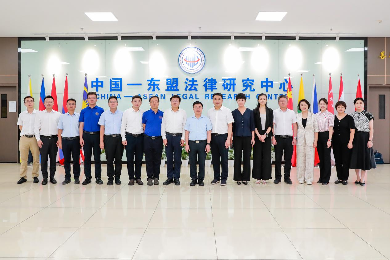 何志敏一行到访西南政法大学宝圣湖校区综合楼,参观了习近平法治思想研究阐释成果展和知识产权工作成果展。之后听取了民进西政支部副主委阳兴龙关于中国——东盟法律研究中心的工作汇报以及民进西政支部主委李雨洁关于支部情况和建设的汇报。