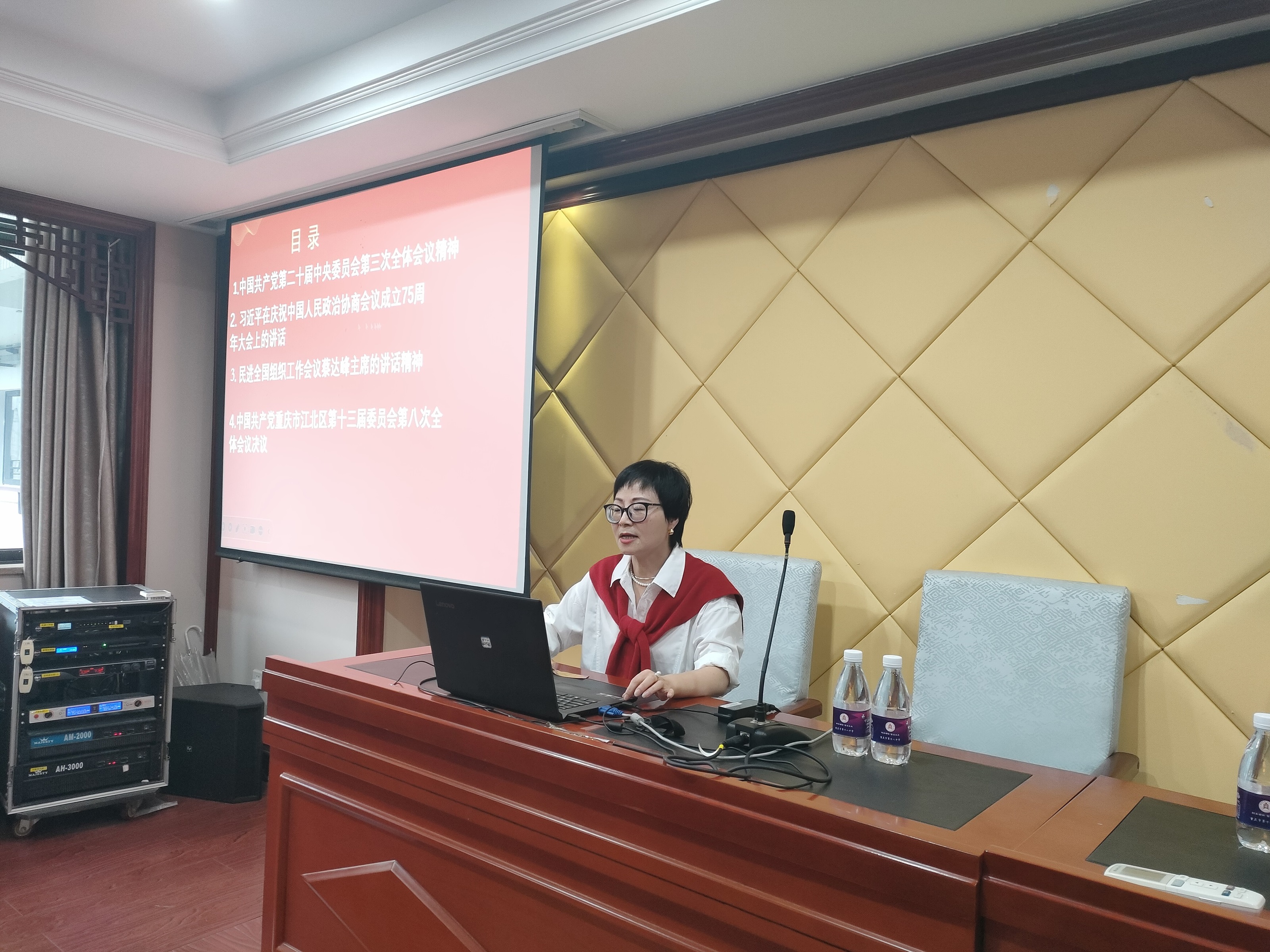 会上集体学习了中共二十届三中全会精神、习近平总书记在庆祝中国人民政治协商会议成立75周年大会上的重要讲话精神、民进中央主席蔡达峰在民进全国组织工作会议上的讲话精神等,并就中共江北区十三届八次全会决议作了分析讲解。