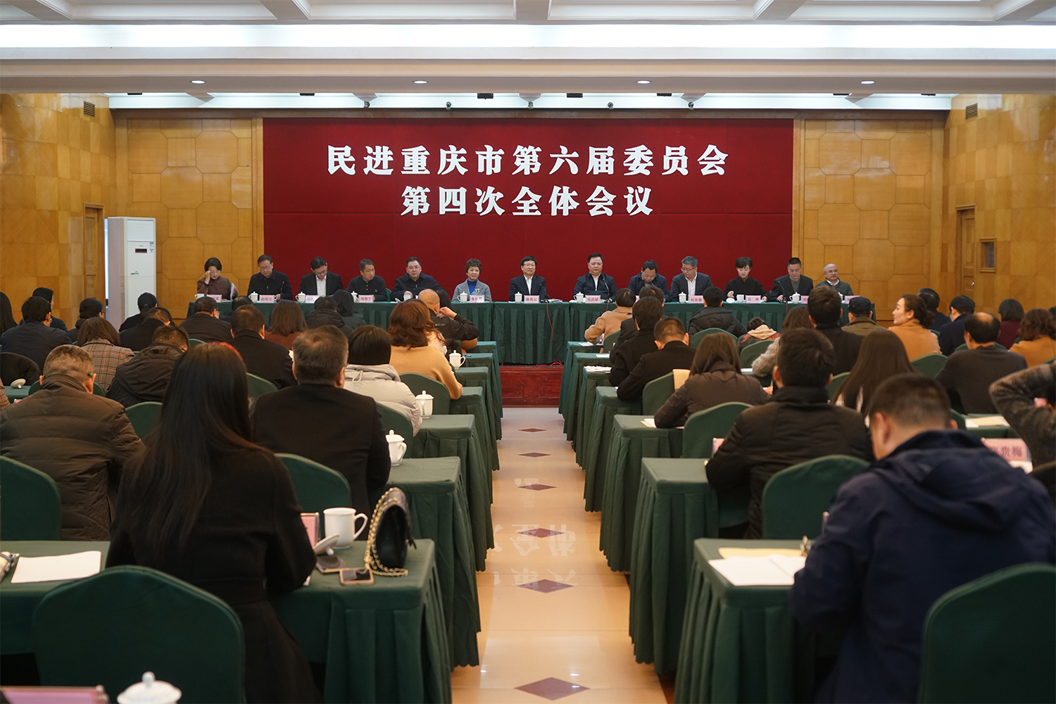12月27日,民进重庆市六届四次全委会在市民主党派大楼召开。民进重庆市委会主委、市政协副主席陈贵云代表民进重庆市第六届常务委员会作工作报告。中共重庆市委统战部常务副部长张洪斌到会并讲话。民进市委会对口联系单位市商务委二级巡视员刘保富,市文化旅游委党委委员、二级巡视员赵明全,市大数据发展局二级巡视员周卫东应邀到会。民进市委会副主委张礼慧、别必亮、罗挺、侯东德、黄伟、刘贤宁、高琳、钟代笛,秘书长欧阳喜出席。别必亮、高琳分别主持第一次、第二次大会。