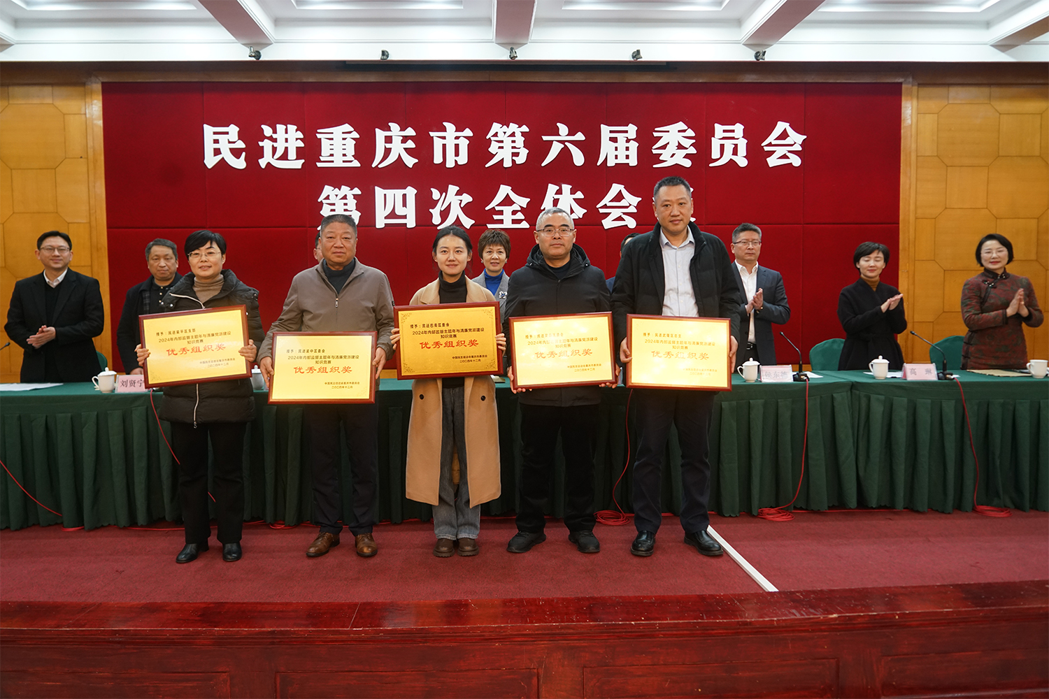 下午举行的第二次大会审议通过了《民进重庆市第六届常务委员会2024年工作报告(草案)》《民进重庆市第六届委员会内部监督委员会2024年工作报告(草案)》;代颁了民进全国组织工作先进集体、先进个人奖证;表彰了市委会年度专项工作先进单位、市委会工作机构履职先进单位、市委会内部监督主题年与清廉党派建设知识竞赛优秀组织和优秀个人。