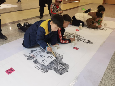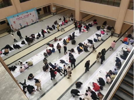 活动现场,四幅共计长达百米的画卷徐徐展开,100组亲子家庭参与者们齐聚一堂,手持画笔,以线描形式,满怀激情地在画卷上描绘着自己心中对“慈、善、孝、义、廉”文化的理解和对新年的美好祝愿。