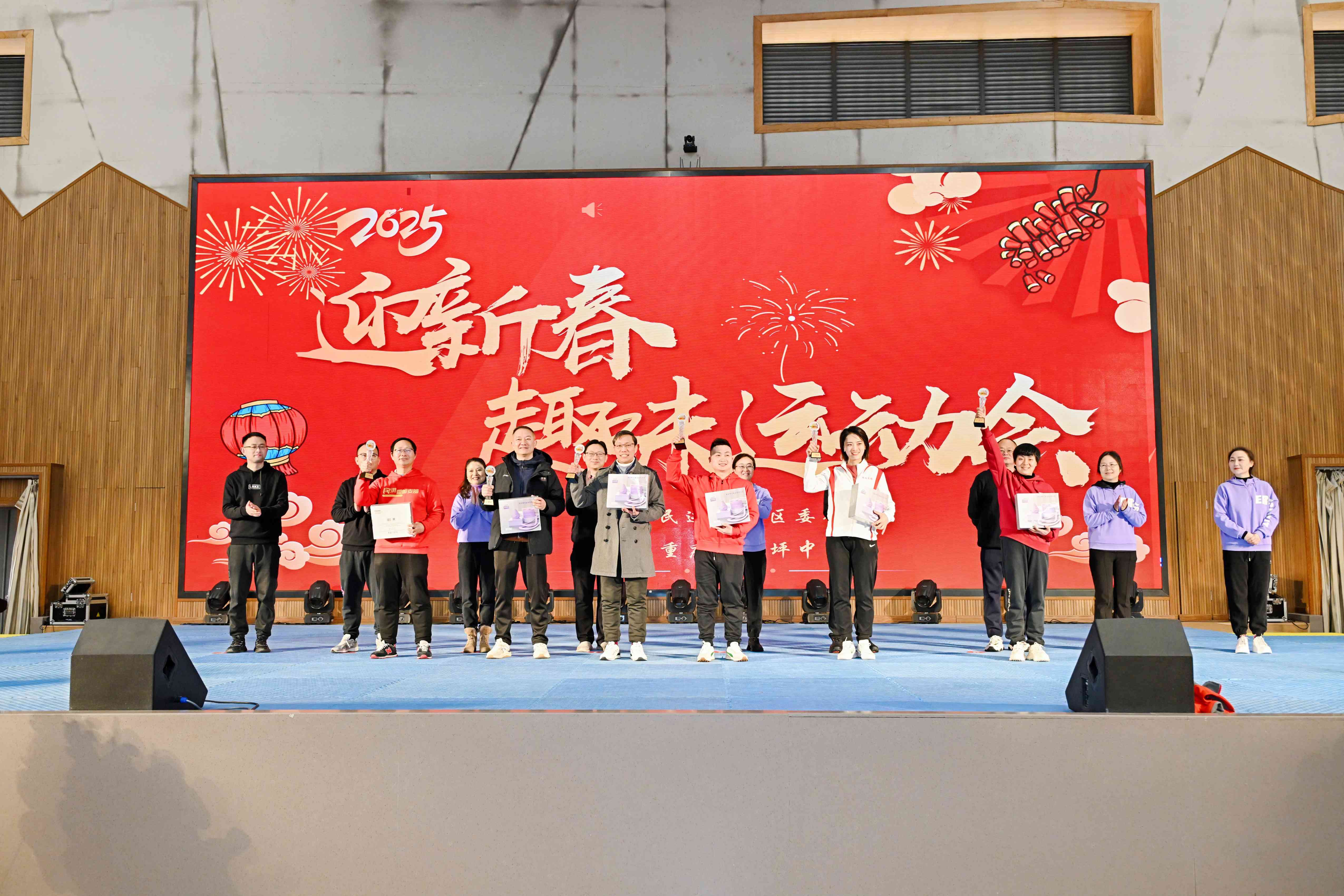 1月11日上午,民进南岸区委会200余名会员在重庆市南坪中学欢聚一堂,参加民进南岸区委会迎新春趣味运动会。民进重庆市委会副主委钟代笛、民进南岸区委会主委郭同永、中共南岸区委统战部常务副部长王俊出席活动。
