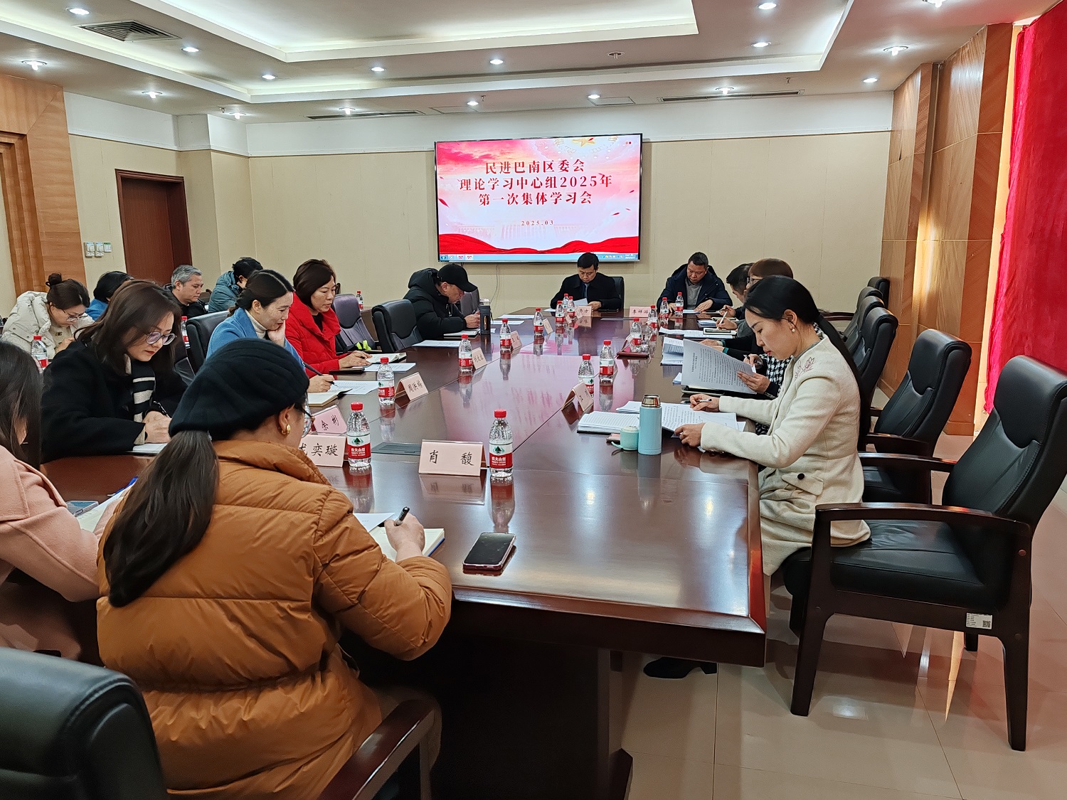3月17日下午,民进巴南区委会召开理论学习中心组集体学习会,专题学习全国两会精神。会议由区委会主委、区政协副主席姜莹星主持,区委会委员、监委会委员、支部主委、副主委,会内人大代表、政协委员30余人参加会议。