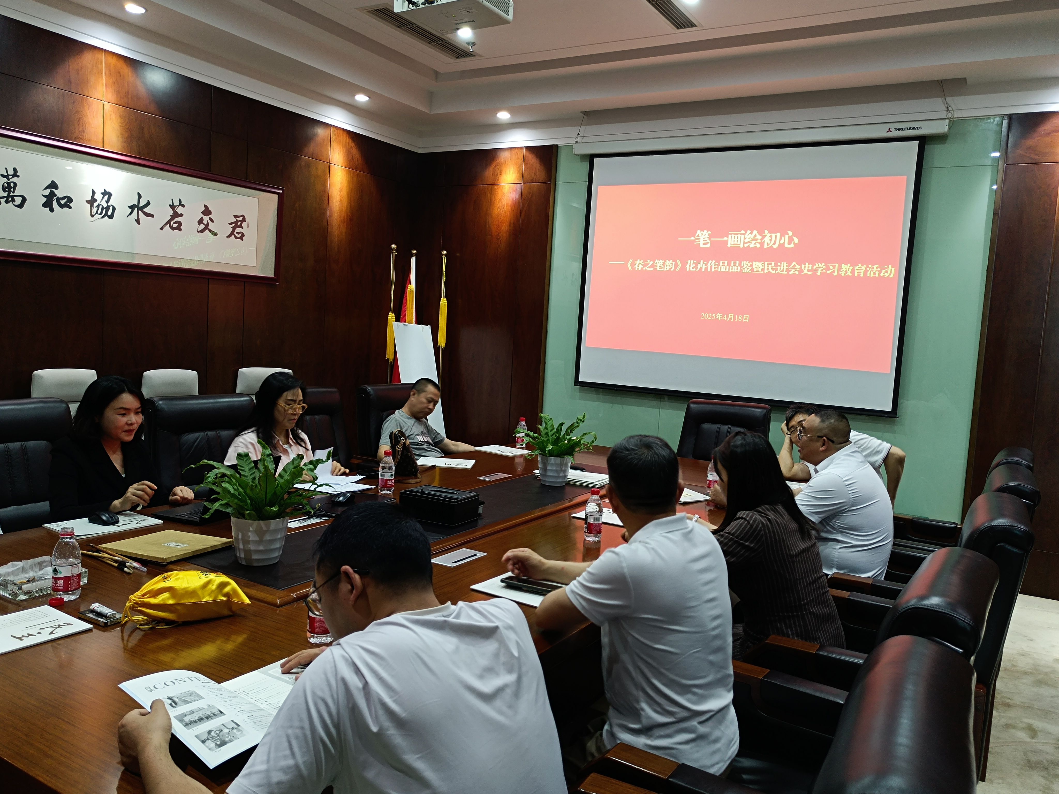 为深化民进会史学习,创新组织生活形式,4月18日,渝北开明画院组织开展“一笔一画绘初心——《春之笔韵》花卉作品品鉴暨民进会史学习教育活动”,将艺术审美、实践体验与会史教育深度融合,通过“观赏+学习+共创”的沉浸式体验,进一步凝聚团结奋进力量。