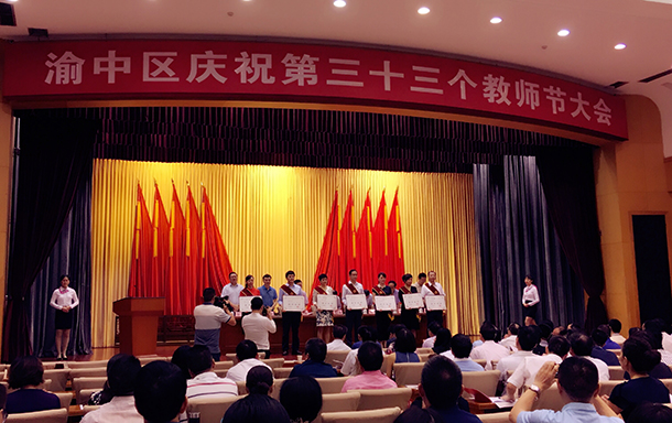 在9月7日召开的渝中区庆祝第三十三个教师节大会上,郭莉、吕萍、张曼等三名民进会员由于在政治思想表现、职业道德、教育教学能力、工作业绩等方面表现突出,荣获“渝中名师”称号。
