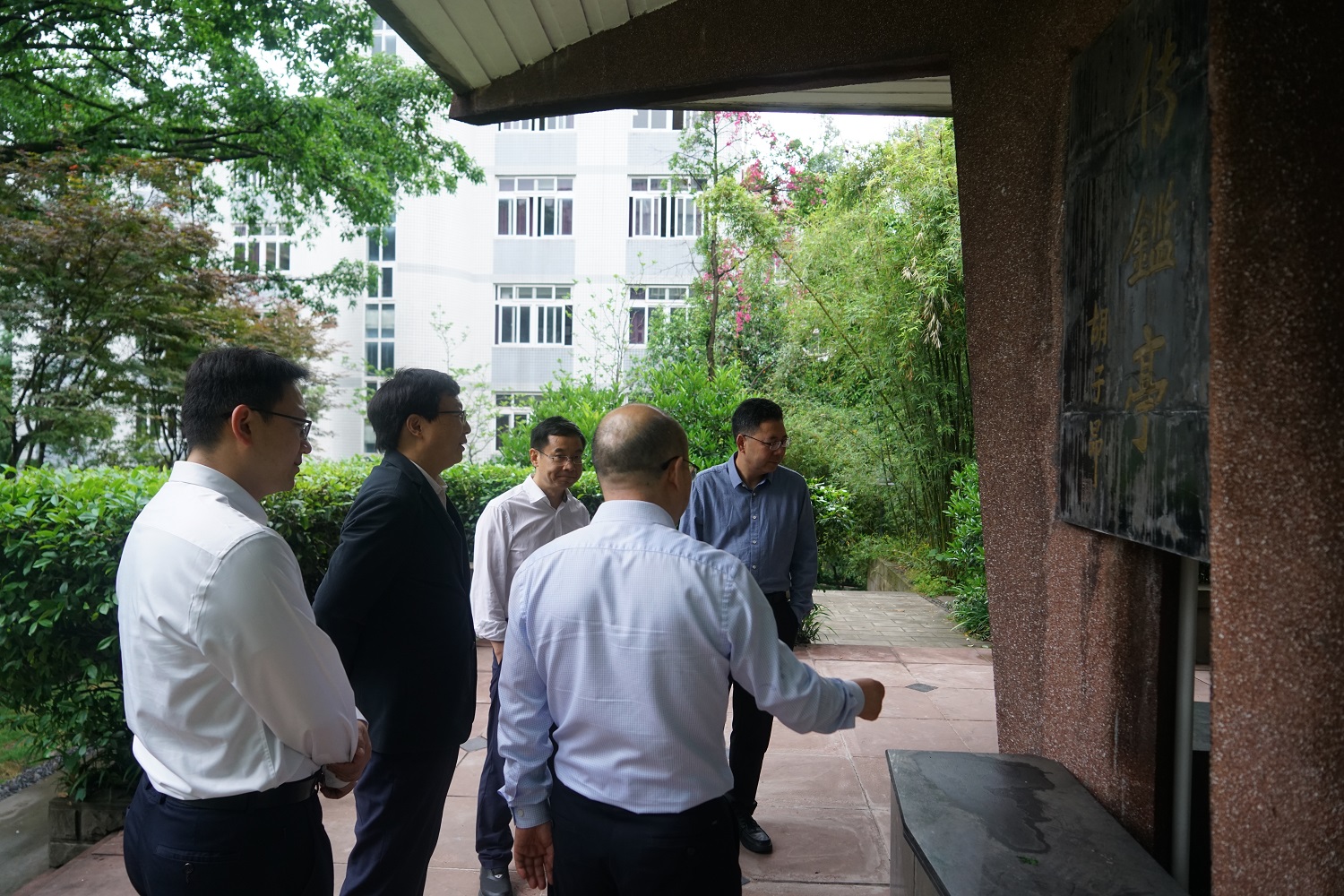 陈贵云一行在重庆南开中学校党委书记冉孟凯和校党委副书记、校长肖力的陪同下,考察了民进重庆市委会首任主委、著名教育家、重庆南开中学创建者喻传鉴的居住地旧址、纪念地传鉴亭,以及校内建于1930年代的部分文物建筑等。在随后召开的座谈会上,陈贵云一行听取重庆南开中学介绍喻传鉴文物保护、史料收集、思想研究等情况,听取沙坪坝区文旅委、区文物管理所介绍关于冰心故居保护利用的情况。与会人员结合民进会史工作主题年工作进行了交流。
