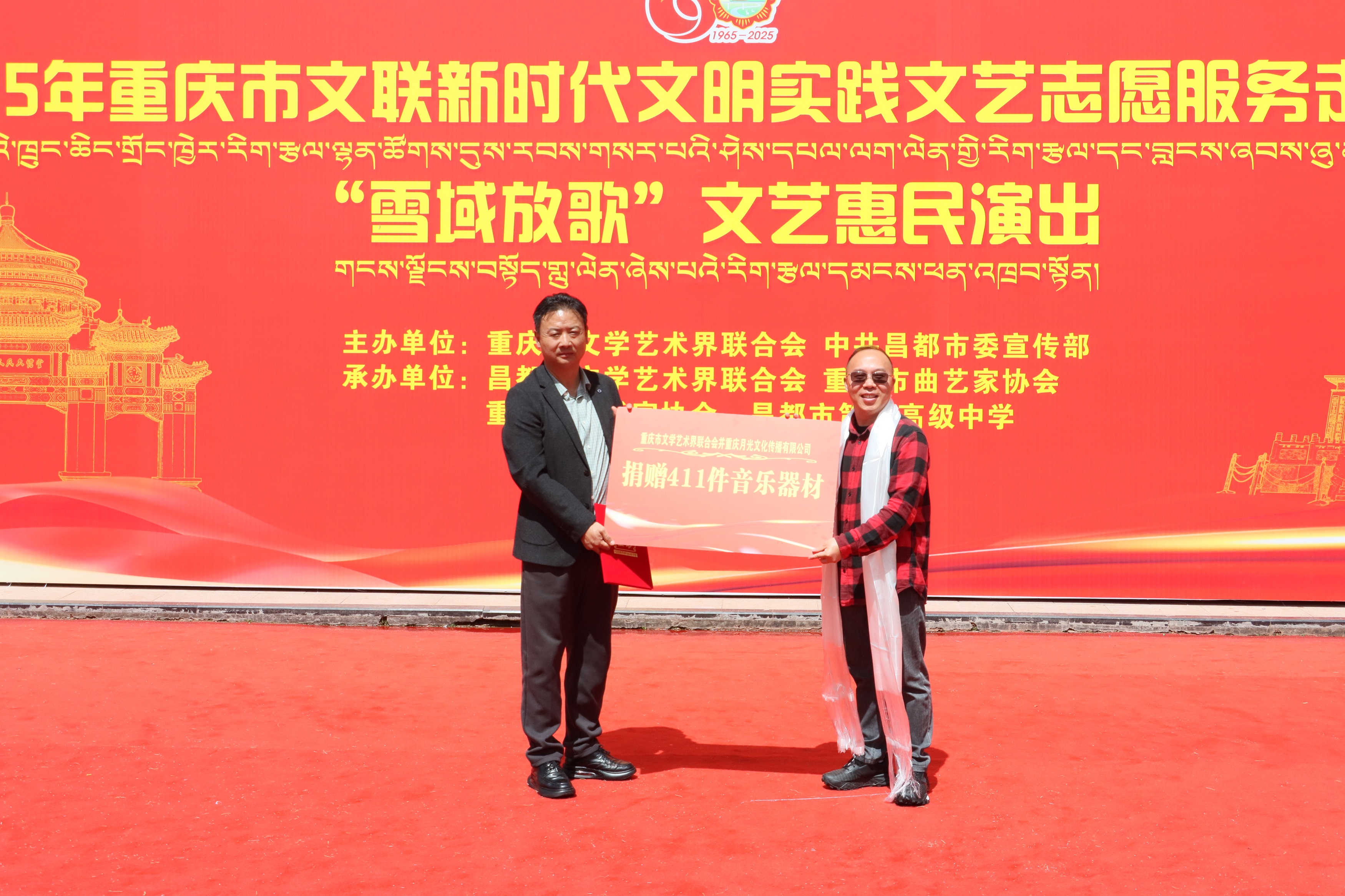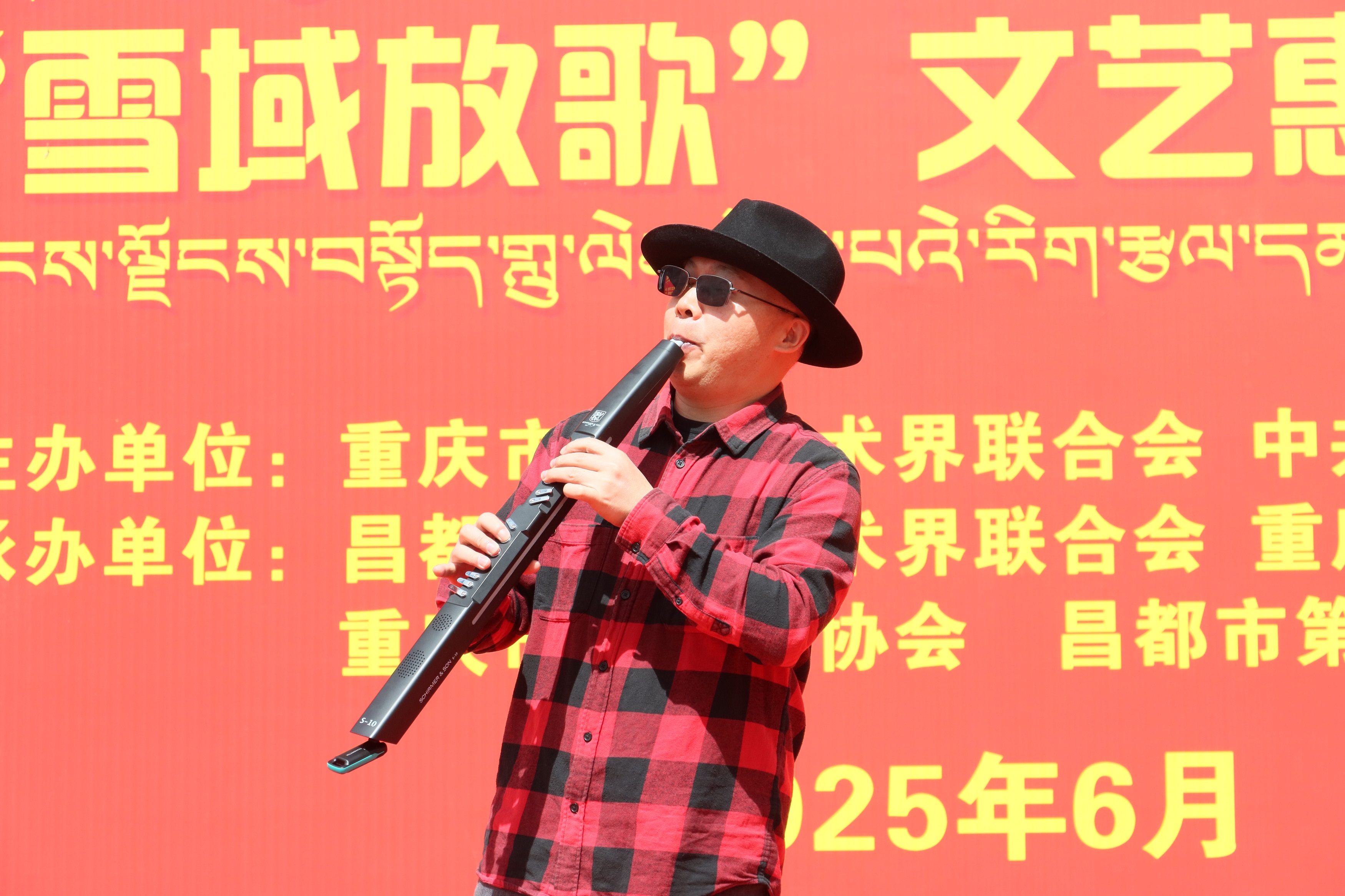 在海拔四千多米的察雅阿孜乡邓普村牧区,王礼全以电子管乐奏响《娥嫚》《花又期》,将巴渝韵律与雪域风情交融,即便暴雨突至,牧民撑伞驻足,乐声与掌声仍回荡草原。在昌都第二高级中学“雪域放歌”惠民演出中,他与团队为1800余名师生献上文化盛宴,并向昌都市文联捐赠钢琴、唢呐等411件总价值10万余元的音乐器材,助力高原文艺发展。