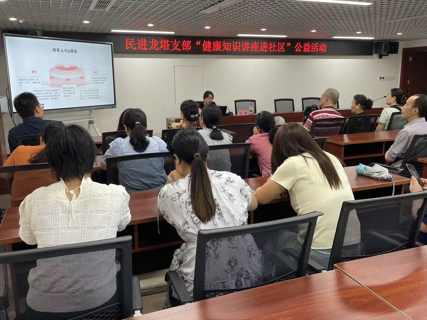 为增强居民健康意识,倡导健康生活方式,有效预防和检查幽门螺杆菌等慢性病,引导居民对各类疾病做到“早预防、早发现、早治疗”。6月26日下午,民进渝北区龙塔支部联合龙塔街道办事处、紫福路社区新时代文明实践站,共同举办了一场主题鲜明、内容实用的健康知识公益讲座。街道辖区的老党员、侨眷及居民代表等居民群众参加活动。