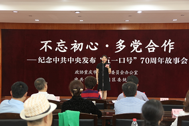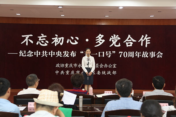4月20日,为纪念中共中央发布“五一口号”70周年,永川区政协办公室、永川区委统战部联合举办的 “不忘初心·多党合作”——纪念中共中央发布“五一口号”70周年故事会在区政协议政厅举行。