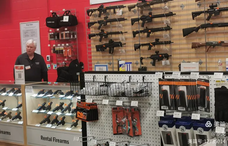 美国是一个允许民众持抢的国家。据说,民众在处于十分危险的境地时,为捍卫自己的生命财产,可以对侵权者开枪自卫(这当然需要严谨的司法鉴定),是在政府、法律无助无能时的一种无奈之举。(时有枪击事件的报道。)因而, 美国不仅有售枪支的店铺,还有提供实枪实弹的体验场地。进到了实枪实弹射击场外的店铺。嗬!四周货架上,陈列着多品种多型号的长短枪,令人眼花缭乱。并且,标明了参数、价格。
