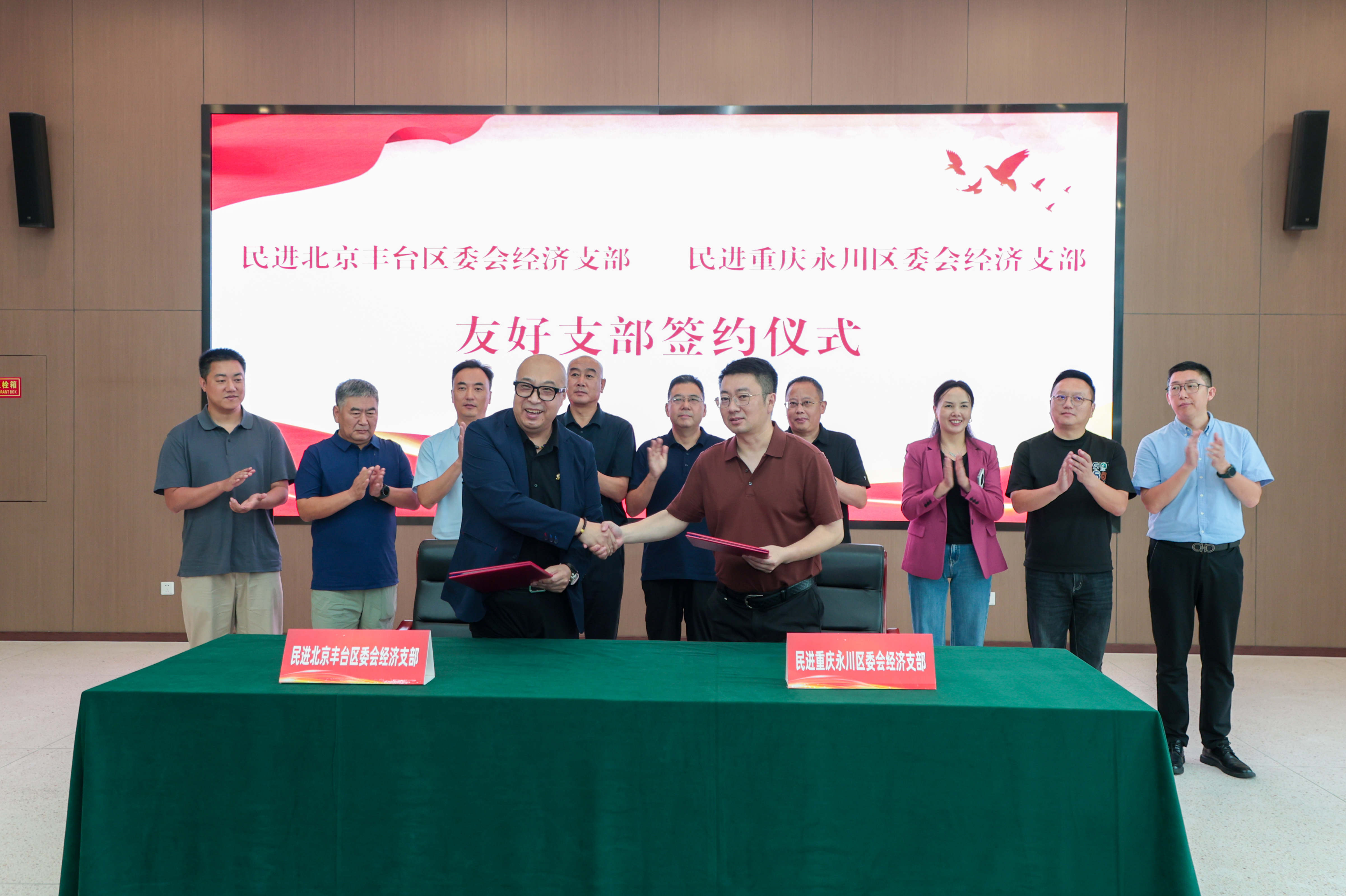 9月26日,民进北京市丰台区经济支部与民进重庆市永川区经济支部在重庆智能工程职业学院举行友好支部签约仪式。民进重庆市委会专职副主委罗挺,中共重庆市永川区委常委、统战部部长陈小东,民进永川区委会主委、区城市管理局局长杜金蓉出席活动。两地经济支部会员代表、企业家联谊会成员等参加活动。