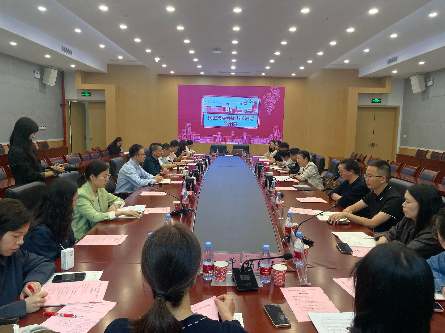 重庆市杨家坪中学部分行政干部,参训学员和指导教师,民进重庆市委会部分专职干部等参加会议。