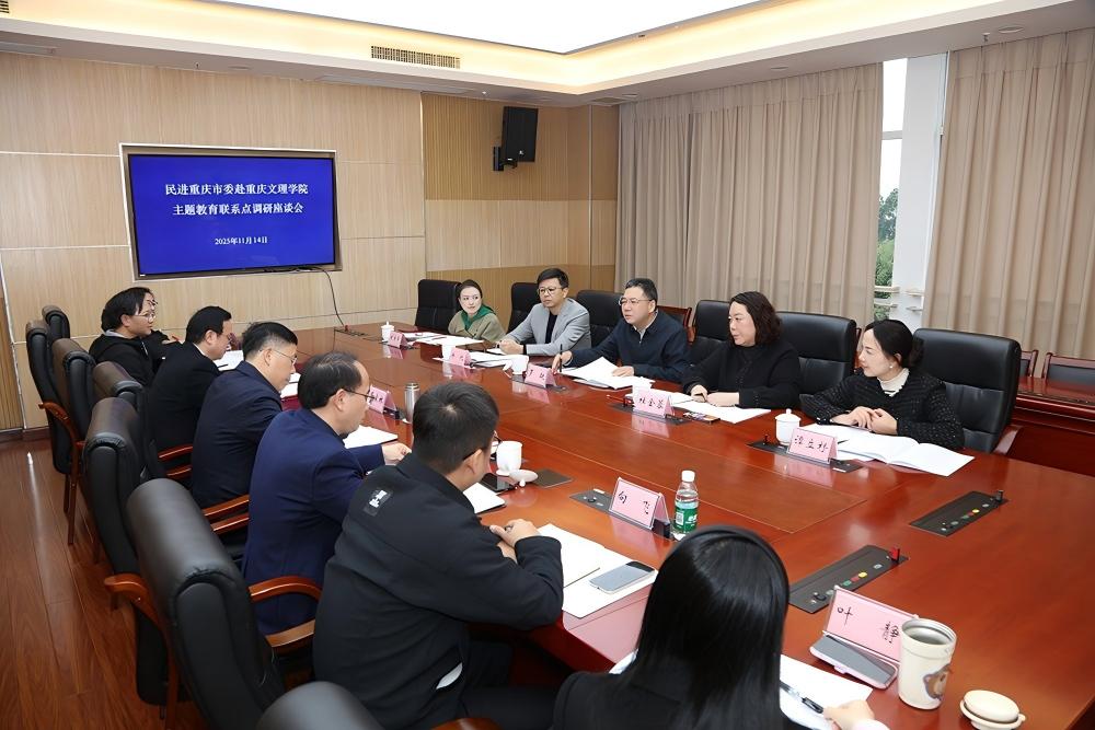 11月14日,民进重庆市委会专职副主委罗挺赴永川区民进重庆文理学院支部开展主题教育联系点工作。重庆文理学院党委书记蔡家林,党委副书记、统战部部长祝朝伟,党委常委、副校长李天福,民进永川区委会主委、区城市管理局局长杜金蓉参加会议。