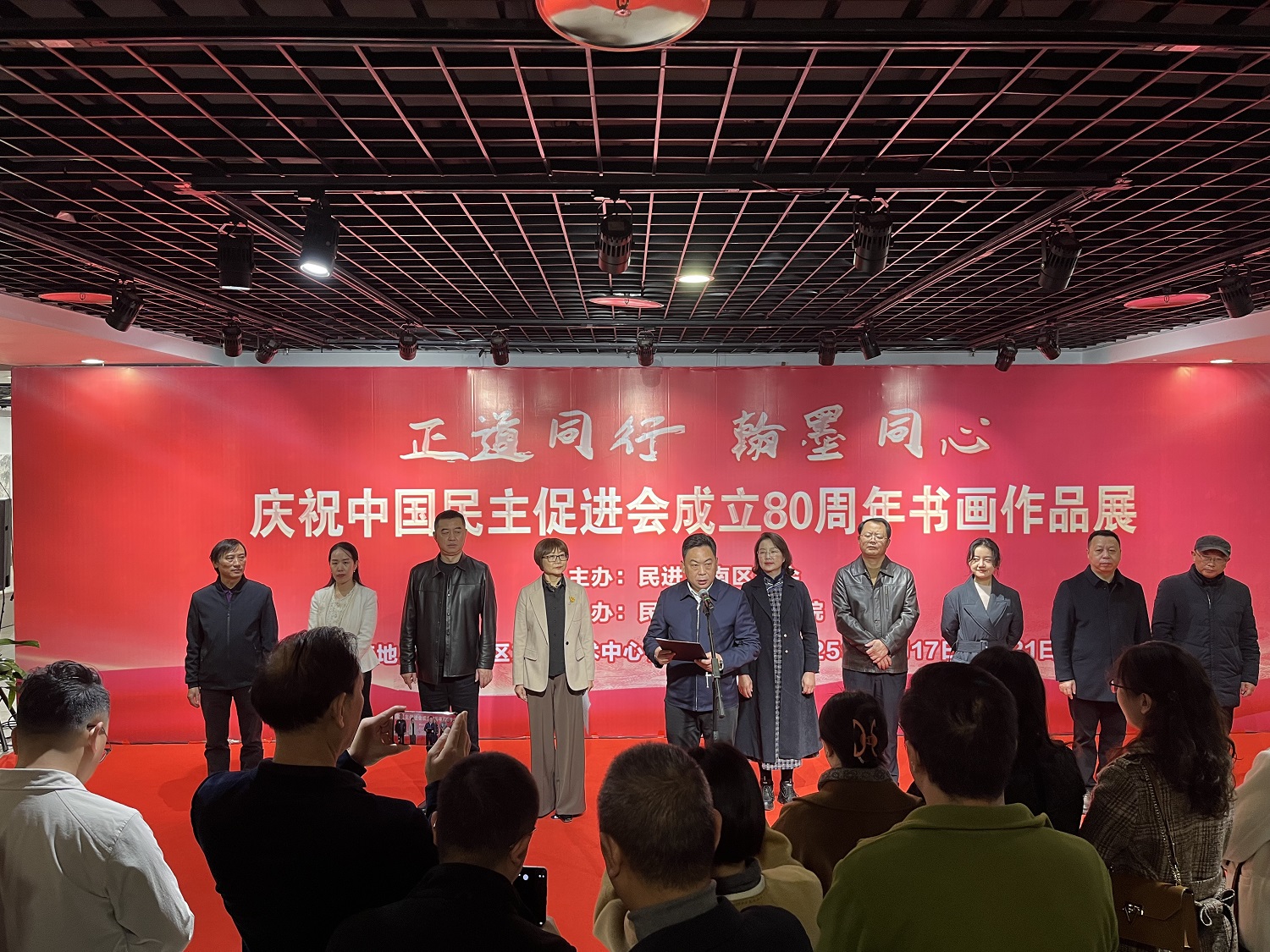 11月17日,民进巴南区委会在重庆市巴南区文化艺术中心隆重举行“正道同行·翰墨同心”书画作品展开幕式,以艺术之笔庆祝民进成立80周年。民进市委会秘书长欧阳喜,中共巴南区委常委、区委统战部部长徐江海,民进巴南区委主委姜莹星,区委统战部常务副部长唐泽奎等领导出席活动。