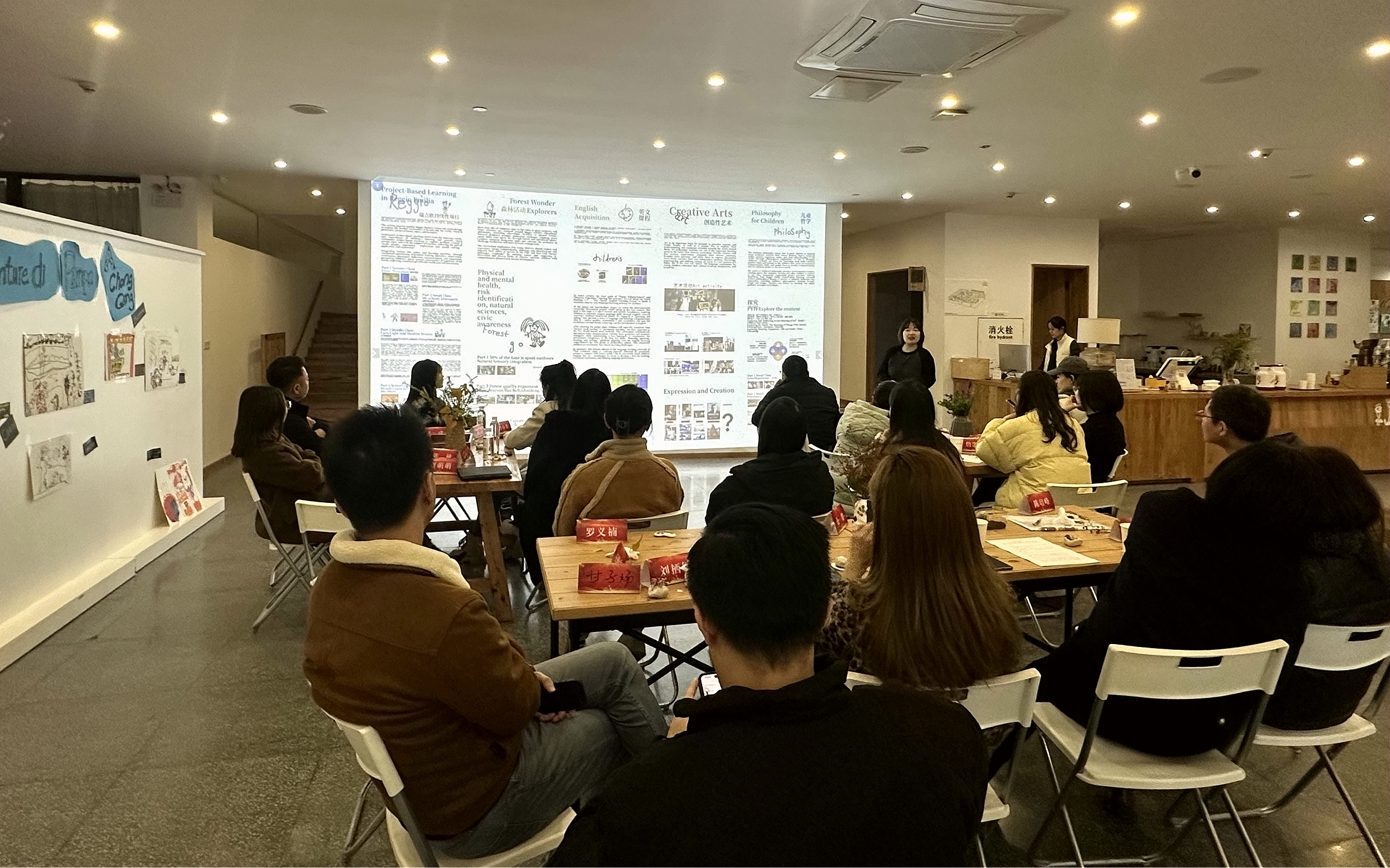 活动伊始,会员们走进山谷四季森林儿童中心,自然笔记展区、木工坊、林间书屋、充满童趣的艺术商店及日暮咖啡等特色空间,瞬间吸引了大家的目光。作为江北民进会员创办的教育机构,这里“将自然引入教室,让课堂融进森林”的办学理念,打破传统教育空间界限,让幼儿在与自然的亲密接触中探索成长。会员们边参观边交流,细致询问课程设计、活动开展等情况,围绕“自然教育如何赋能幼儿全面发展”展开热烈讨论,现场学习氛围浓厚。