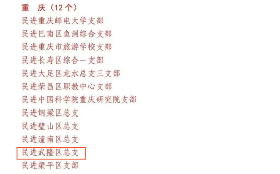 民进武隆区总支荣获“民进全国先进基层组织”称号