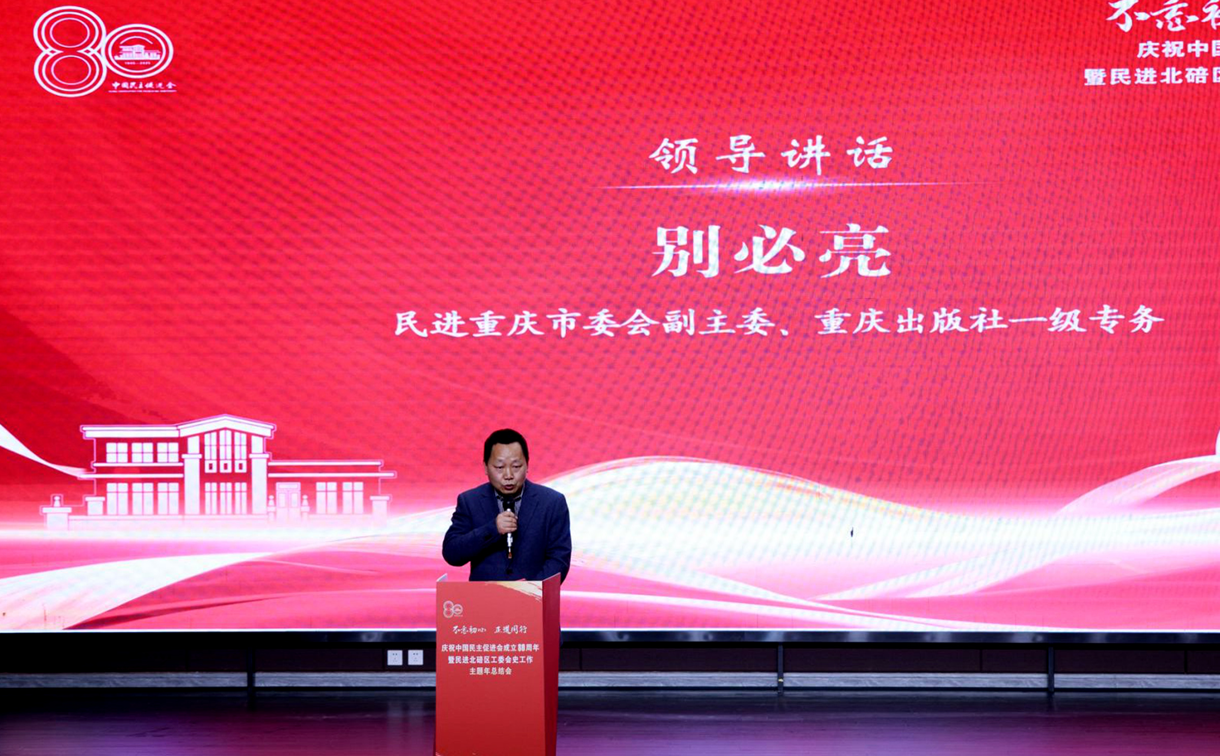 会议中,刘贤宁作民进北碚区工委会史工作主题年工作报告。区政协副主席、民盟北碚区委会主委于泽元代表北碚区各民主党派区委会向民进成立80周年庆祝活动致贺词。万朝学在讲话中充分肯定北碚民进过往成绩并对未来发展提出殷切期望。