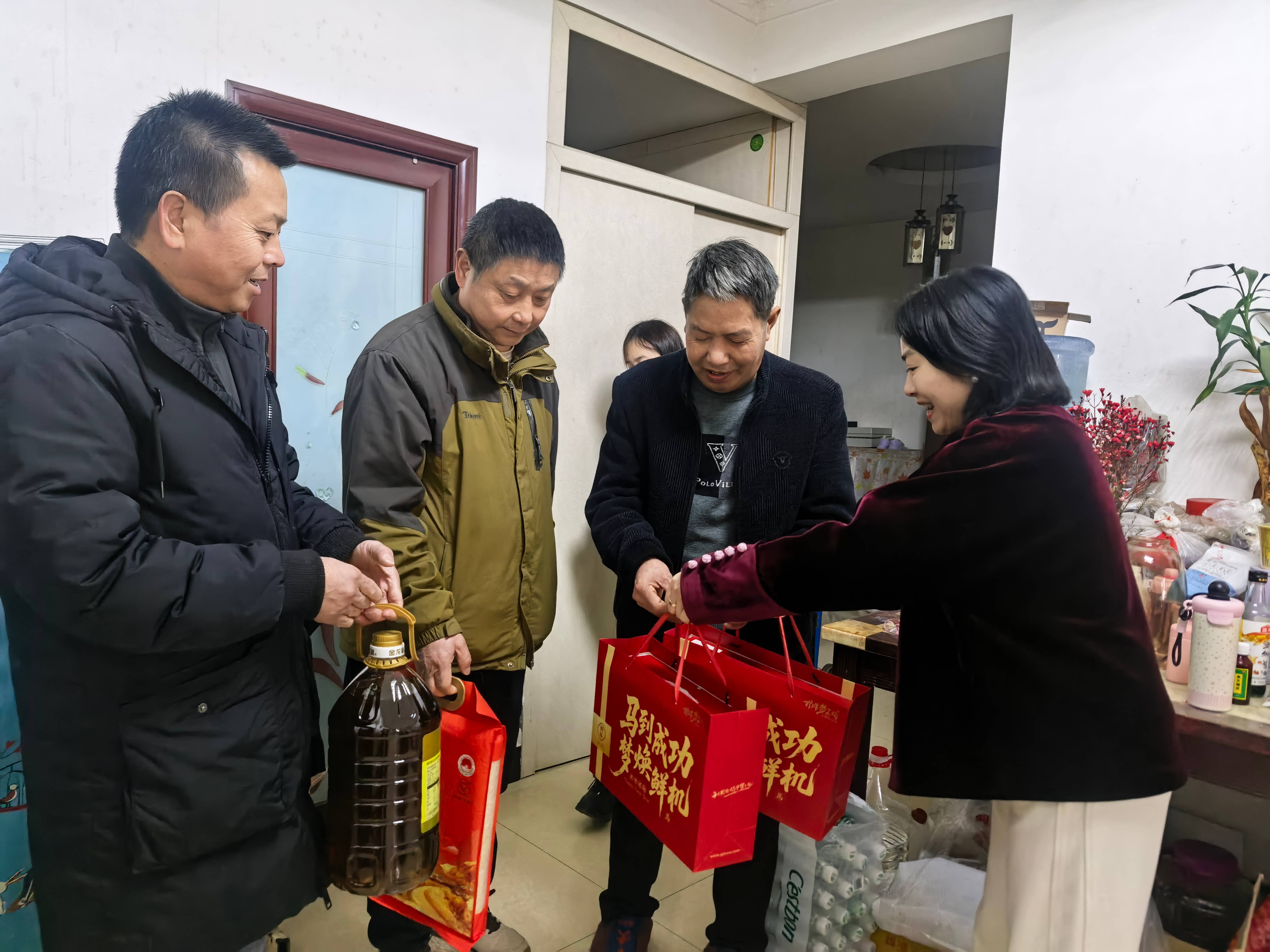 1月28日,民进綦江区万盛经济支部组织会员开展困难老人慰问活动,为万盛街道建设社区独居、高龄、因病致困的特殊老年群体送去食用油、大米、牛奶等生活物资及新春祝福。