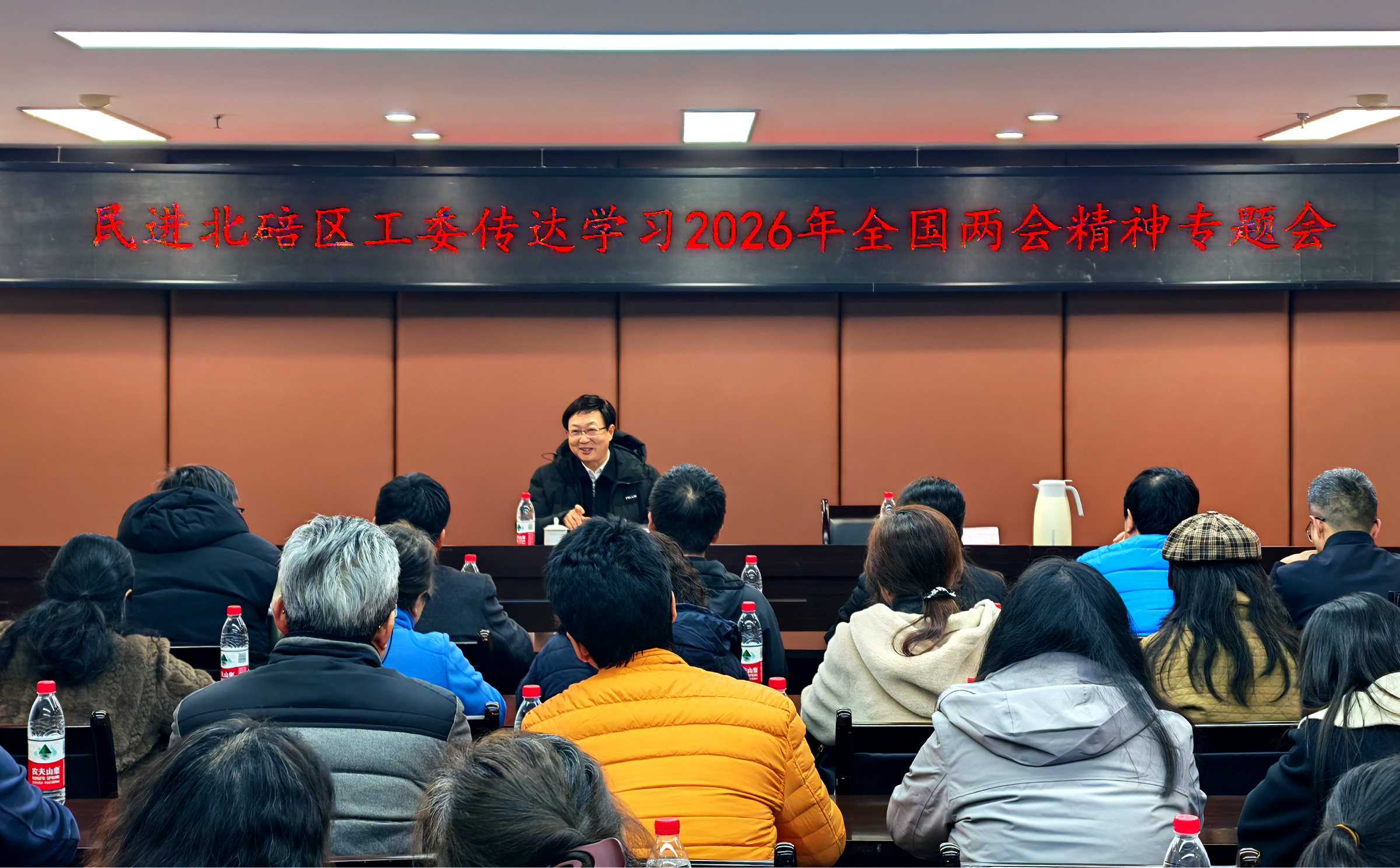 3月17日,民进北碚区工委召开传达学习2026年全国两会精神专题会,传达学习贯彻习近平总书记在全国两会期间的重要讲话精神和十四届全国人大四次会议、全国政协十四届四次会议精神。全国政协常委、重庆市政协副主席、民进重庆市委会主委陈贵云出席会议并作专题辅导报告,民进重庆市委会副主委、民进北碚区工委主委刘贤宁主持会议,区工委70余名会员参加专题学习。