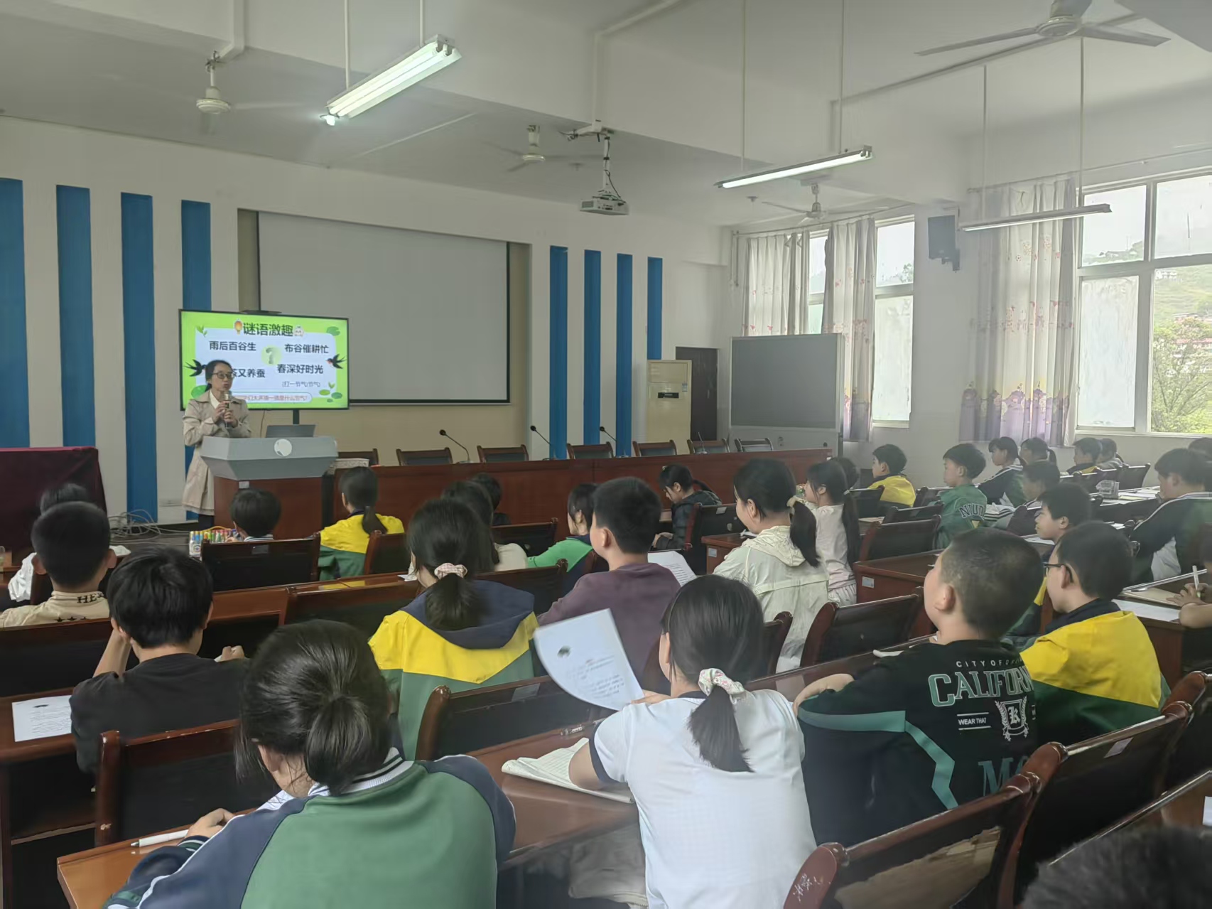 活动现场,总支会员罗红霞以“探秘谷雨——春天的最后一个节气”为主题,为六年级学生精心设计了融合诗词赏析、科学普及与传统文化传承的特色阅读课程。课程紧密结合学生认知特点,创新采用小组协作分享、节气主题绘画、趣味谜语互动等多种形式,将文学素养、美学熏陶与科学知识有机融合,打破学科壁垒,让阅读更具趣味性和实效性。活动中,学生们积极参与齐声诵读、动笔创作、互动交流等环节,在沉浸式体验中感受多学科融合阅读的独特魅力,进一步激发了阅读兴趣、提升了文化素养,切实推动全民阅读理念在乡村校园落地生根。